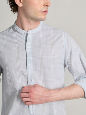 The Hadrian Band Collar Checks Shirt in light Green redefines everyday elegance with its authentic appeal. Crafted from pure cotton, it offers a naturally soft and breathable feel that keeps you comfortable all day. The subtle check pattern and clean band collar design make it a versatile piece, perfect for both casual outings and smart layering. A timeless essential for the modern wardrobe.