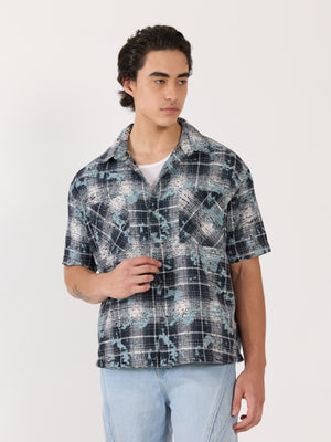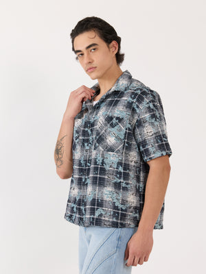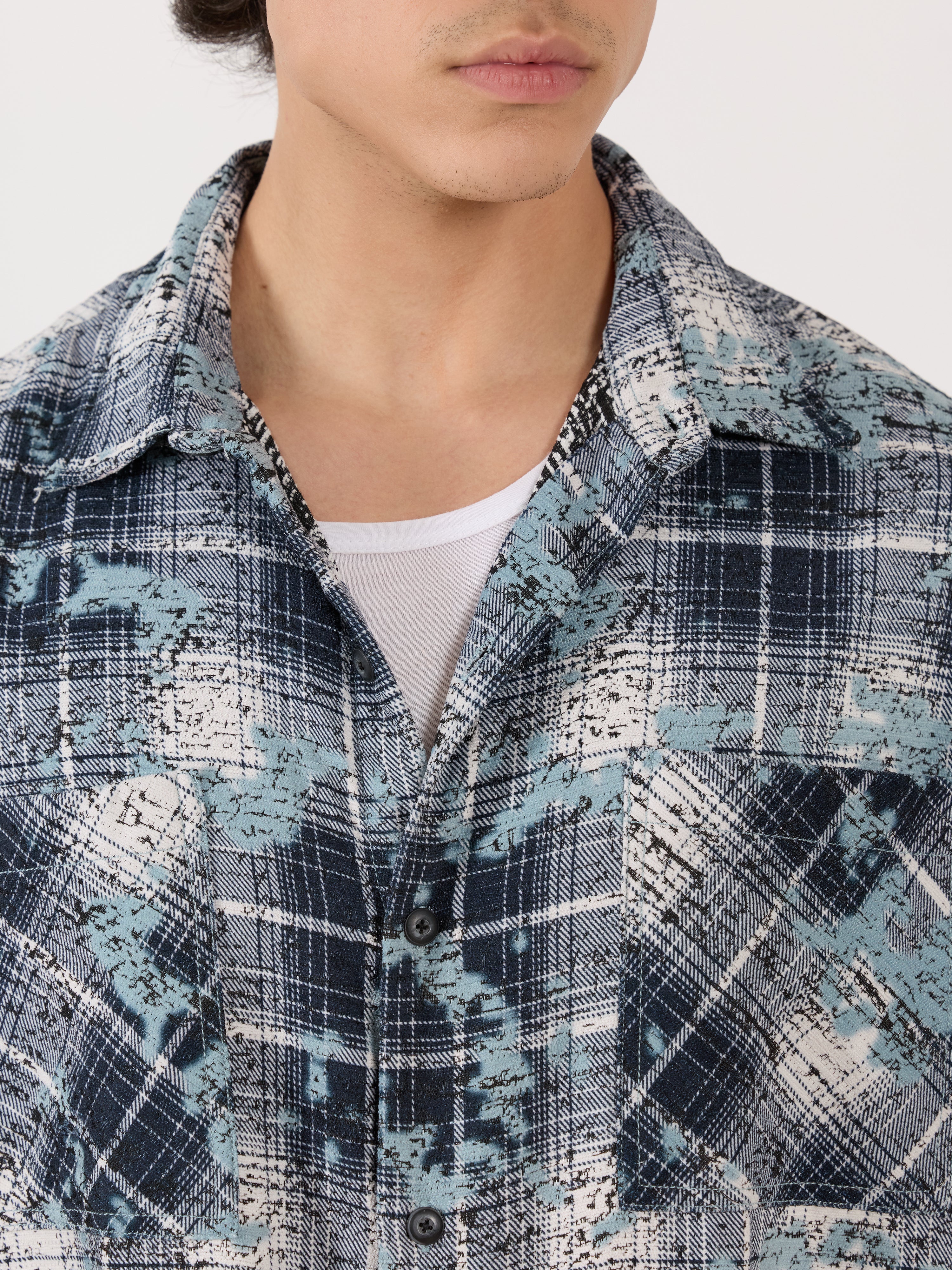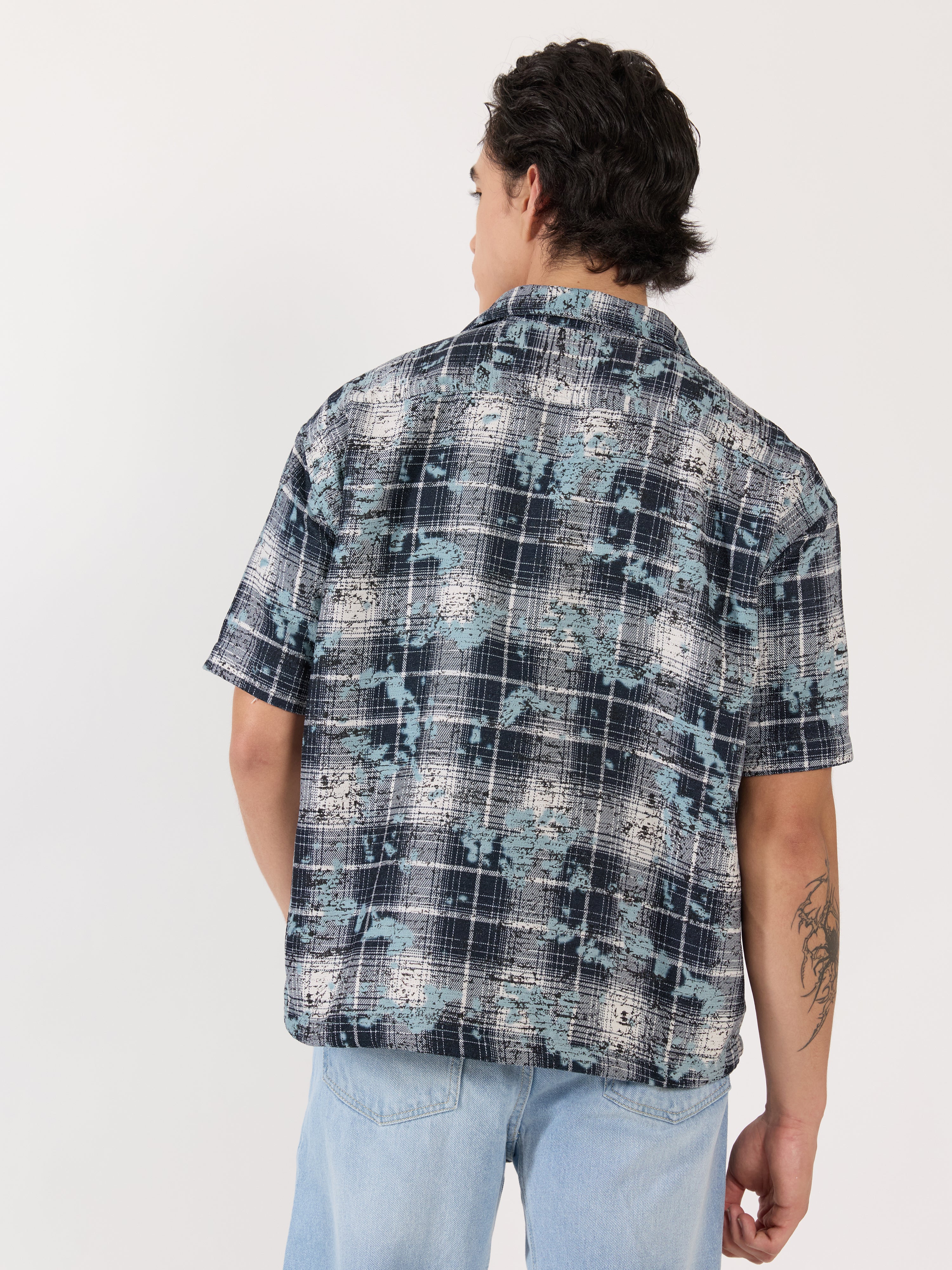 Temito - Oversized Halfsleeve Check Shirt - Blue
