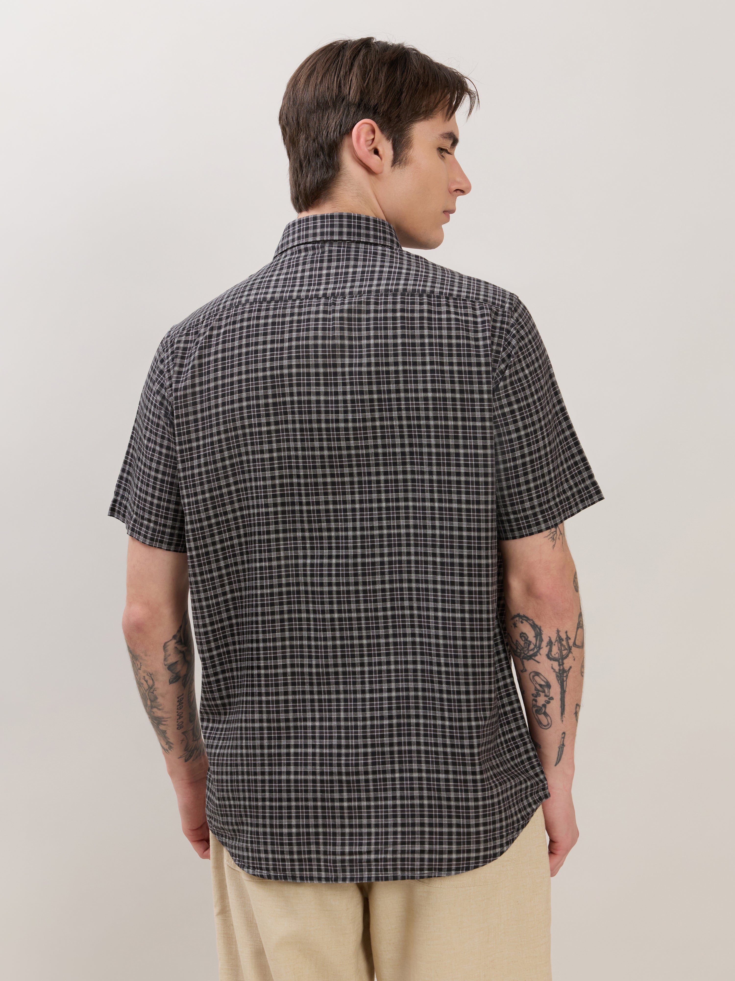 Zenamo - Relaxed Fit Micro Checks Shirt - Black