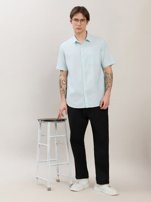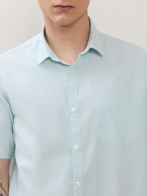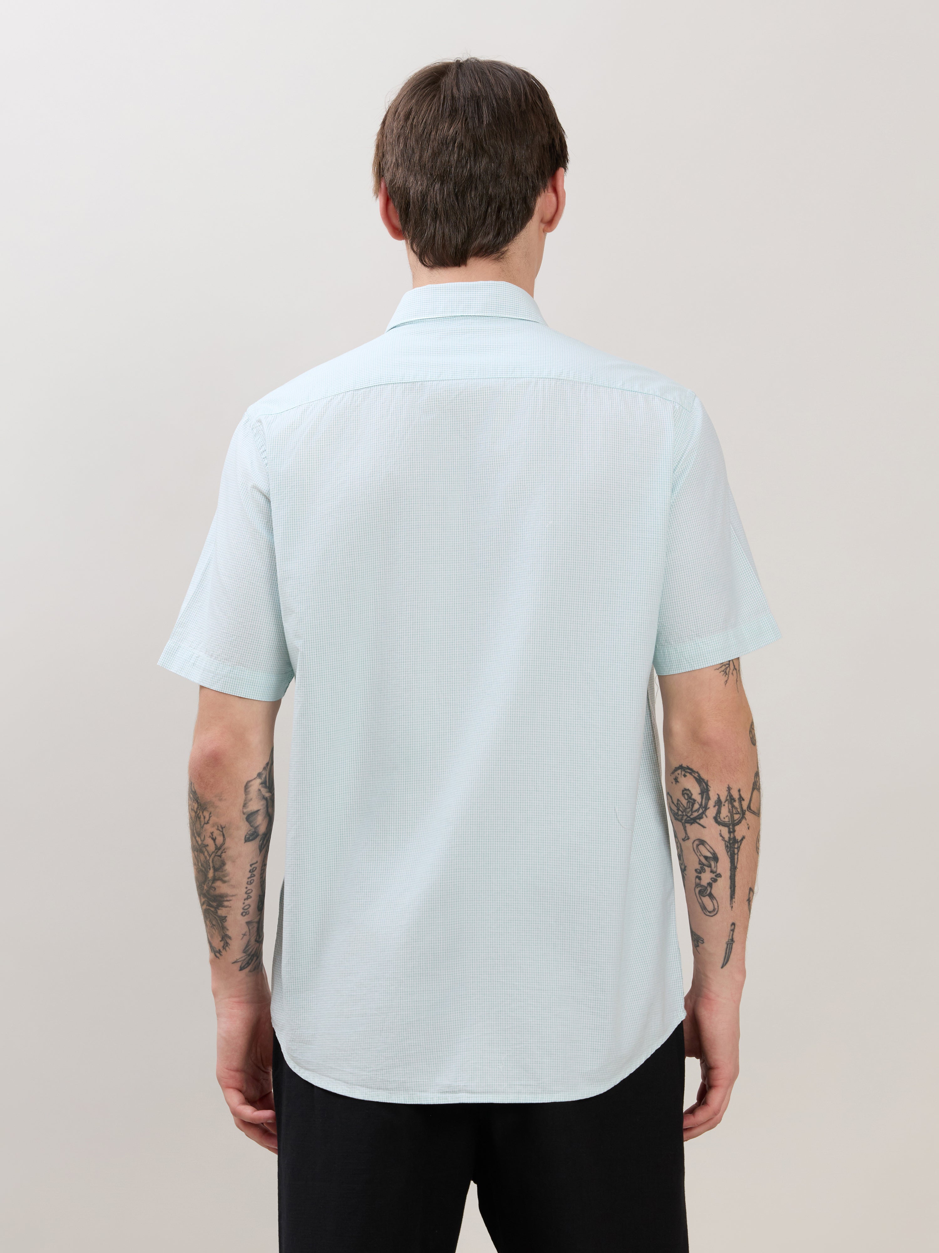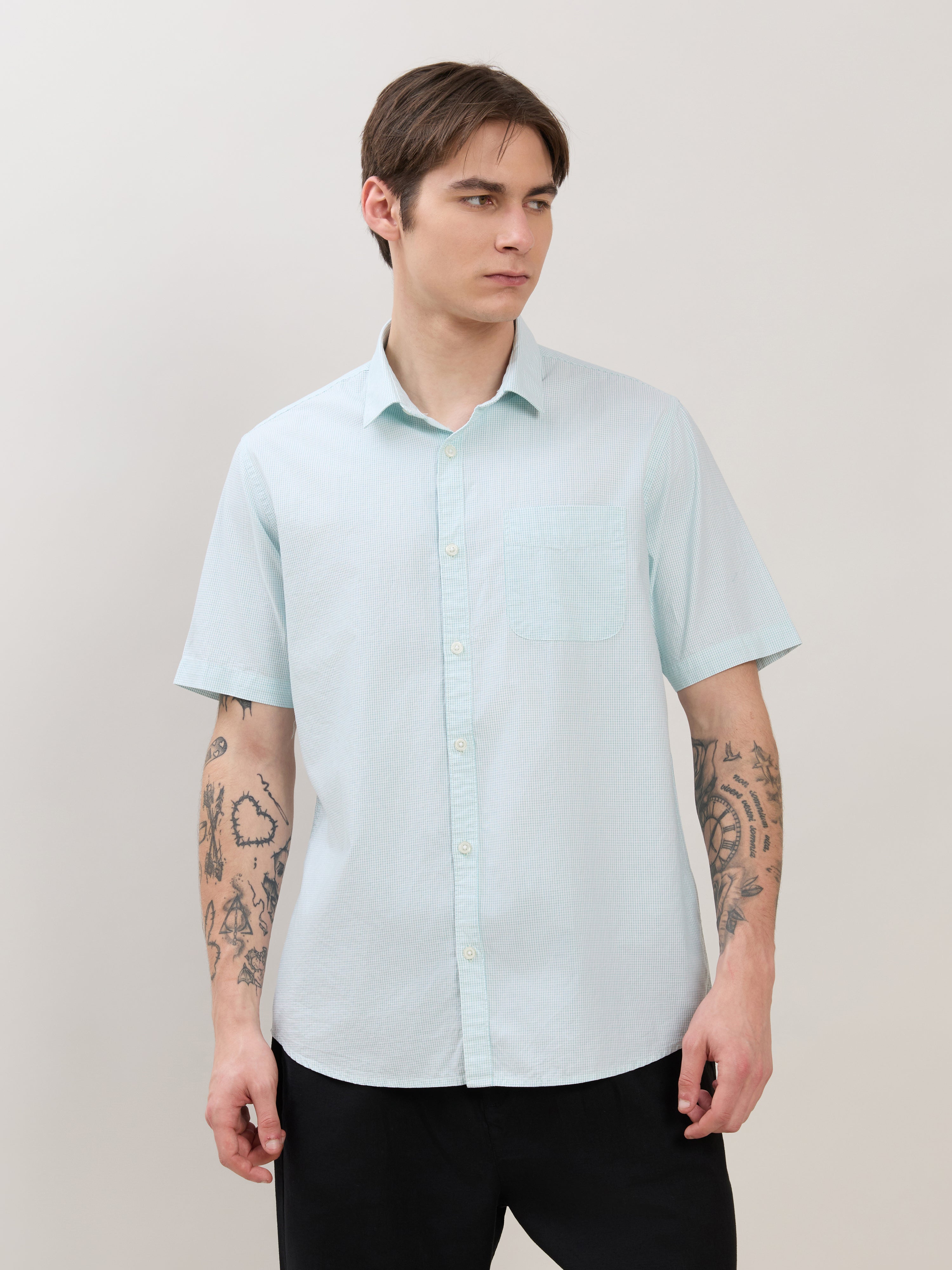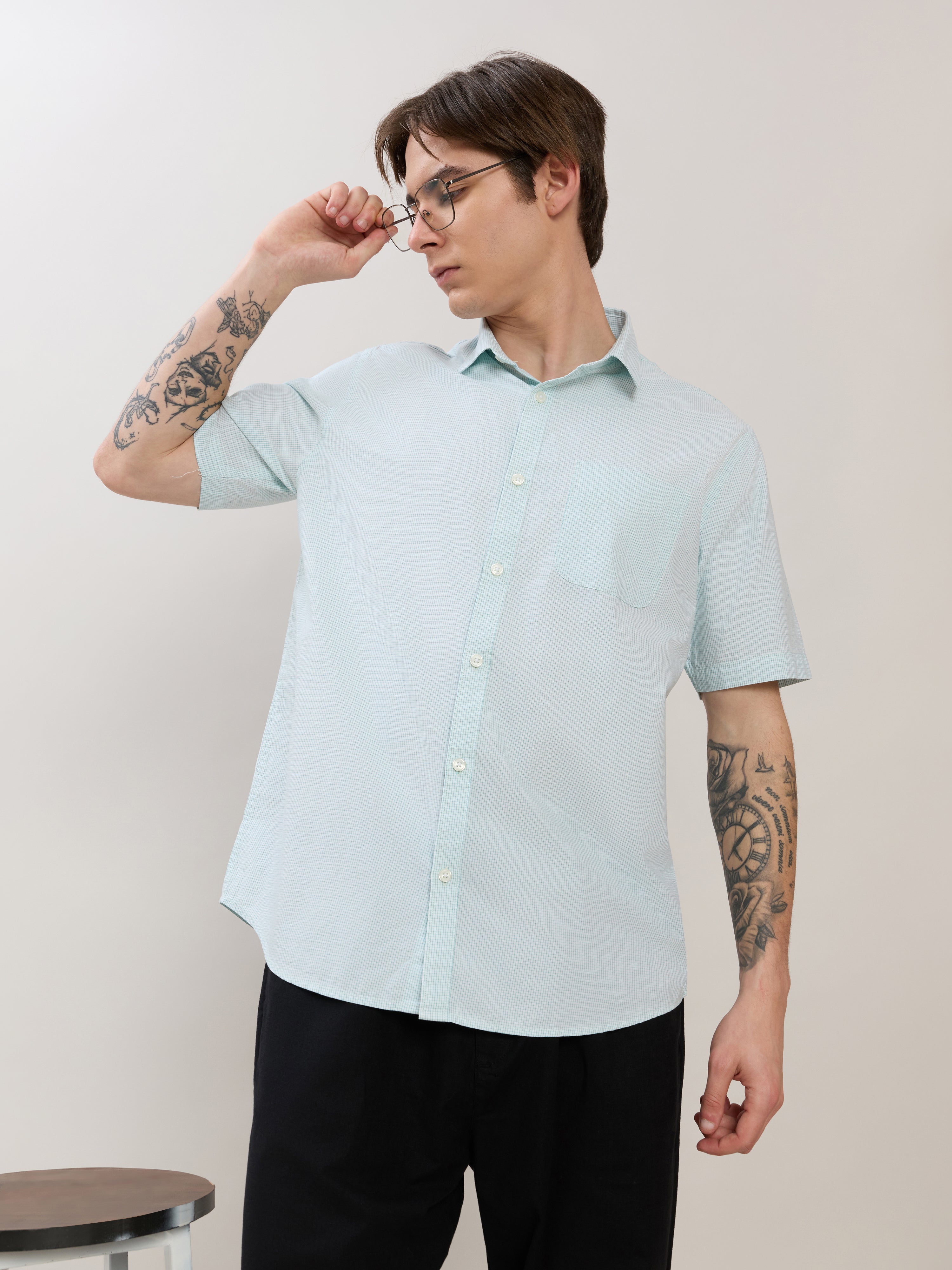 Zenamo - Relaxed Fit Micro Checks Shirt - Mint Blue