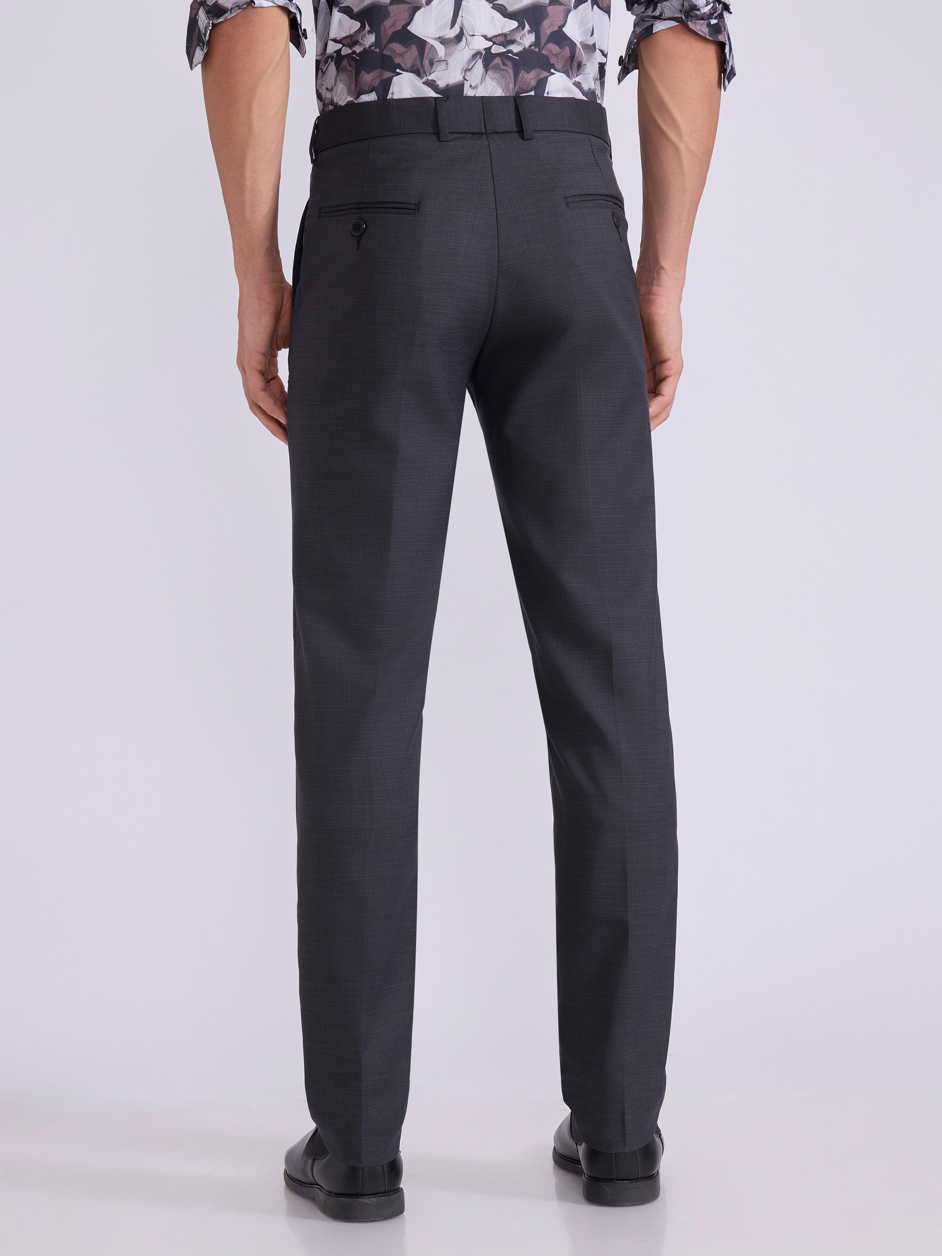 Timeless, sharp, and always appropriate—Maxim is your go-to formal pant for refined dressing. Designed in a sophisticated black grain, it offers a clean, structured silhouette that complements everything from crisp white shirts to darker blazers. Featuring a mid-rise waist, flat front, and straight-leg cut, it is ideal for office hours to formal occasions. The tailored fit ensures comfort without compromising on polish, making Maxim a staple in any modern wardrobe.