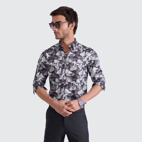 Osmond - Regal Swirl Embellished Shirt - Coffee Brown