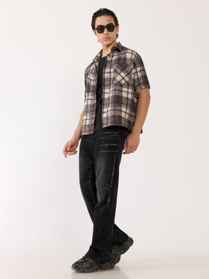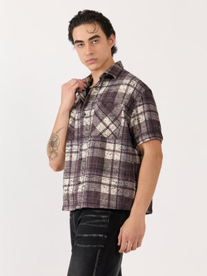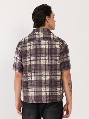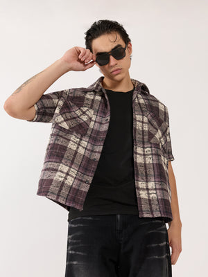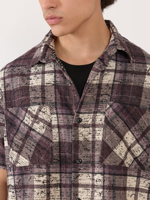 Temito - Oversized Halfsleeve Check Shirt - Raisin Purple