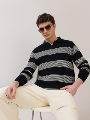 Sepia - Regular Striped Full Sleeve Polo T-Shirt - Black