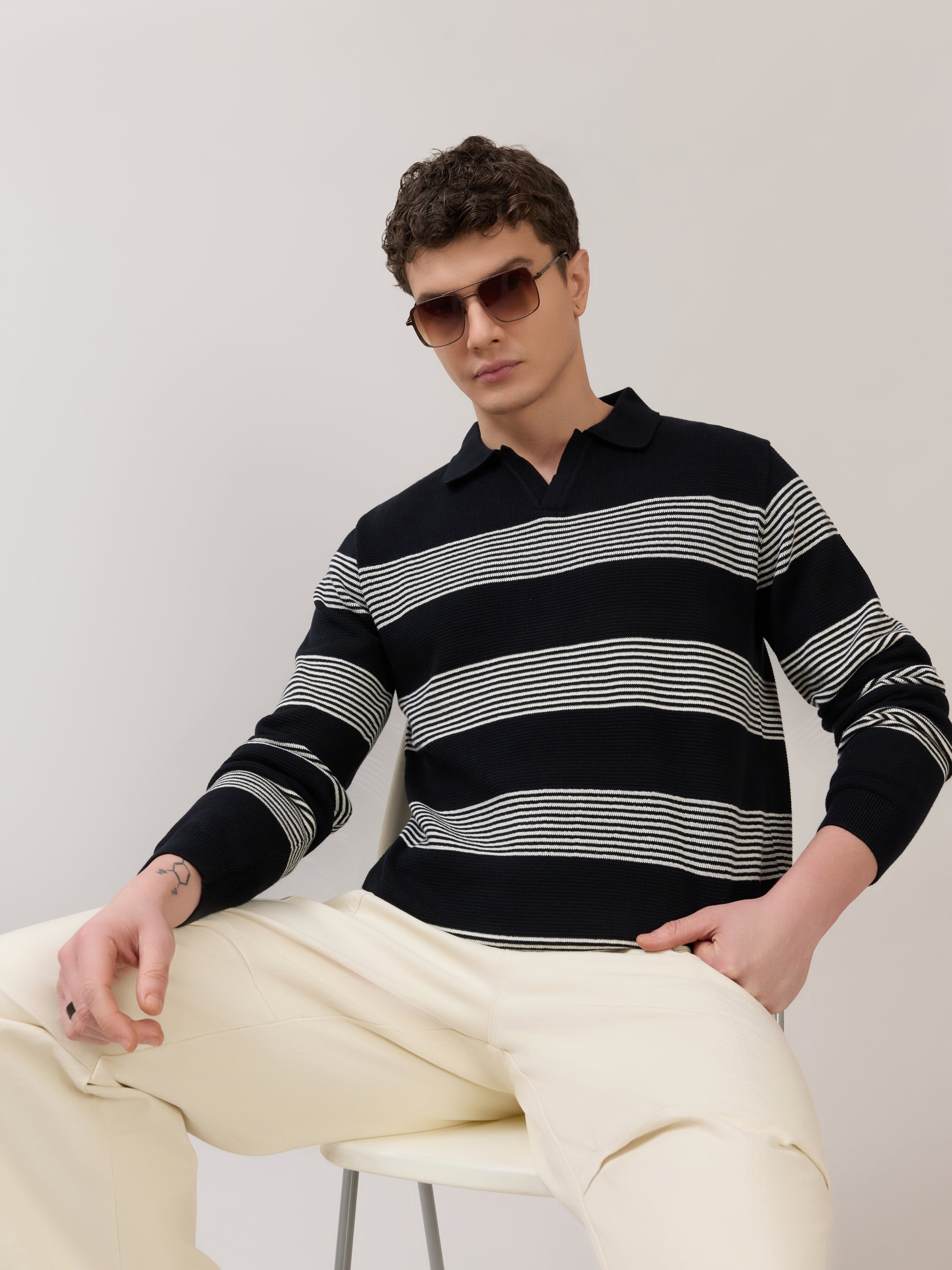 The Sepia striped full sleeve polo T-shirt blends classic style with everyday comfort. Made from breathable pure cotton, it offers a regular fit that feels comfortable throughout the day. The timeless striped pattern adds a refined touch, making it suitable for casual outings, smart-casual looks, and everyday wear. Easy to style with jeans or trousers for a polished yet relaxed appearance.