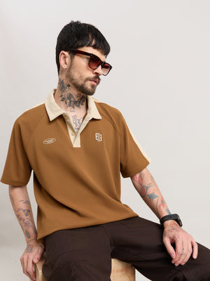 Xomis - Relaxed Fit Printed Polo T-Shirt - Brown