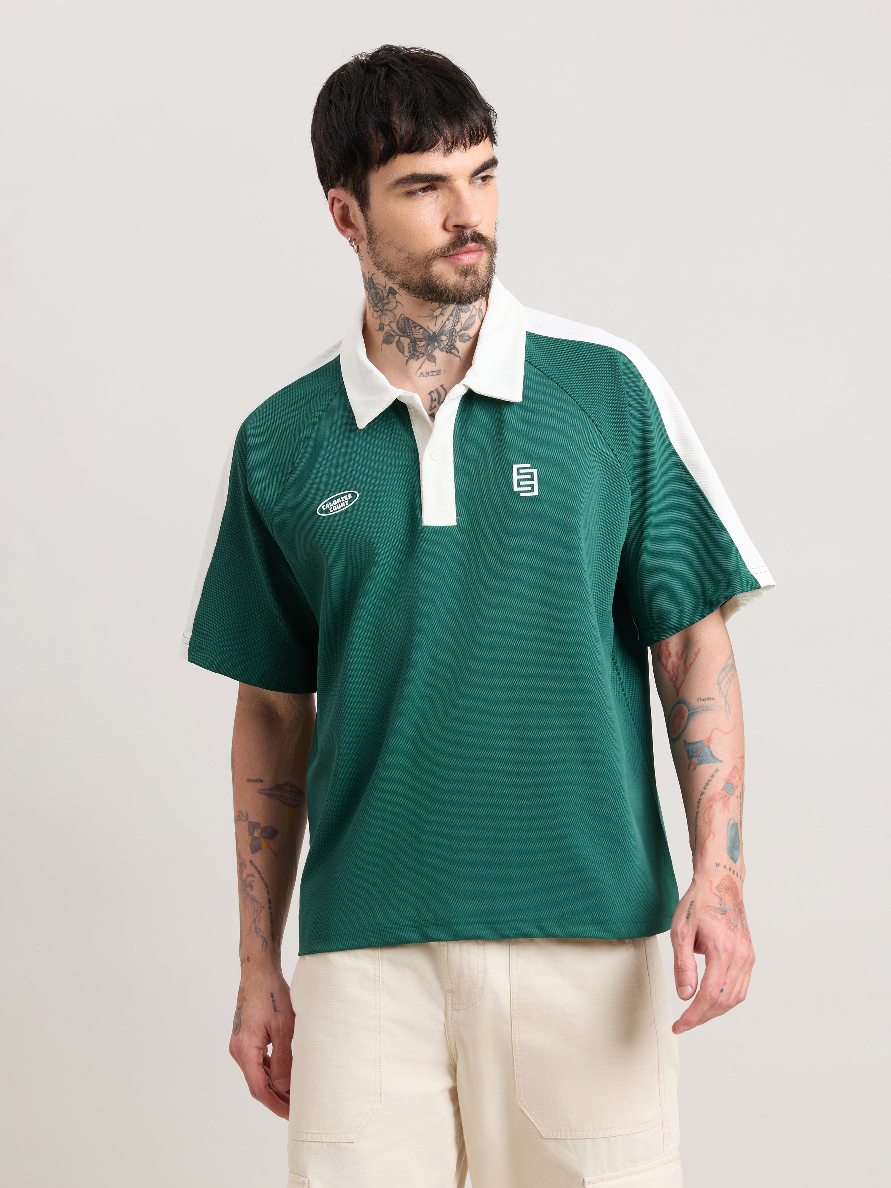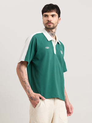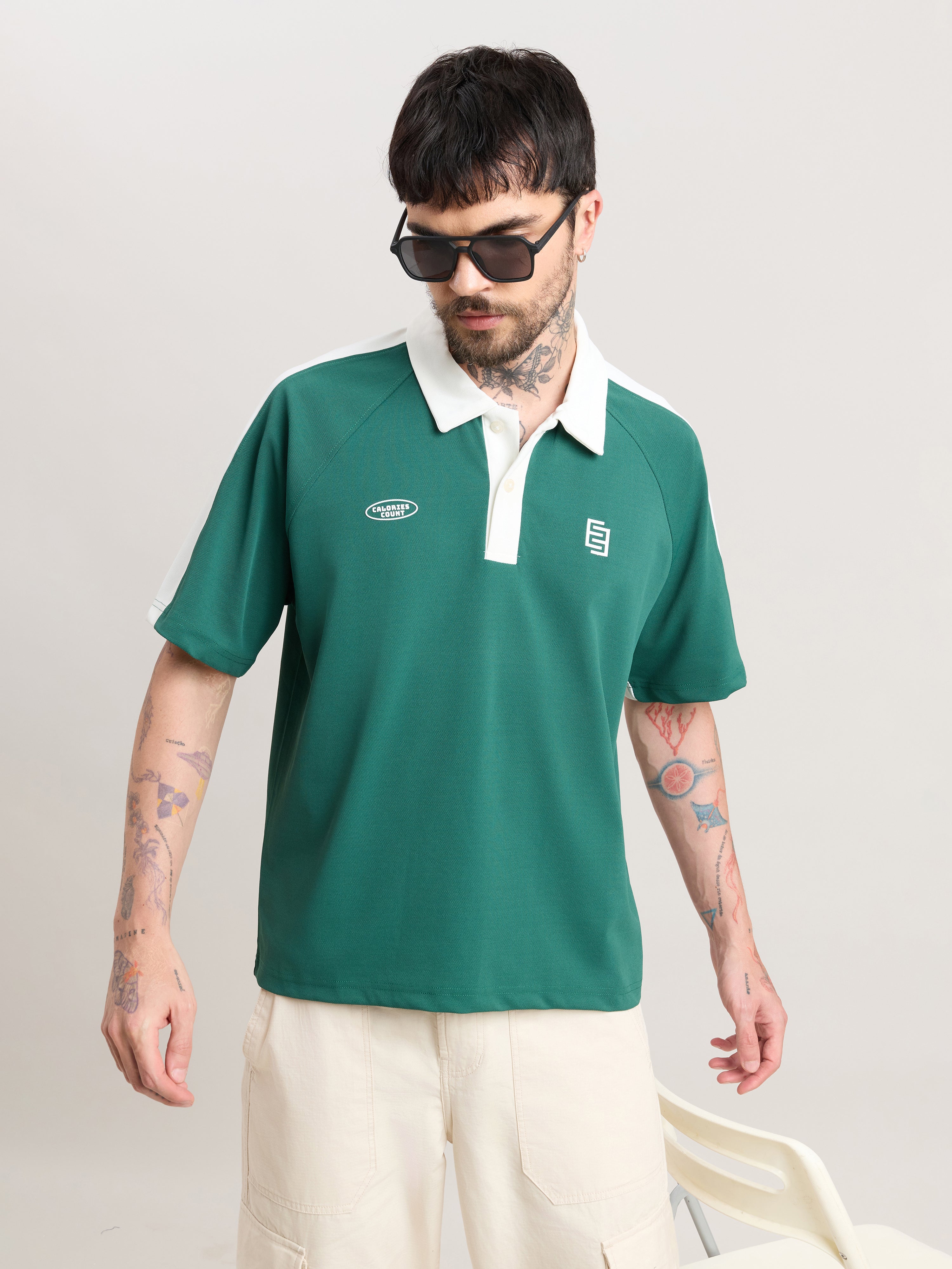 Xomis - Relaxed Fit Printed Polo T-Shirt - Green
