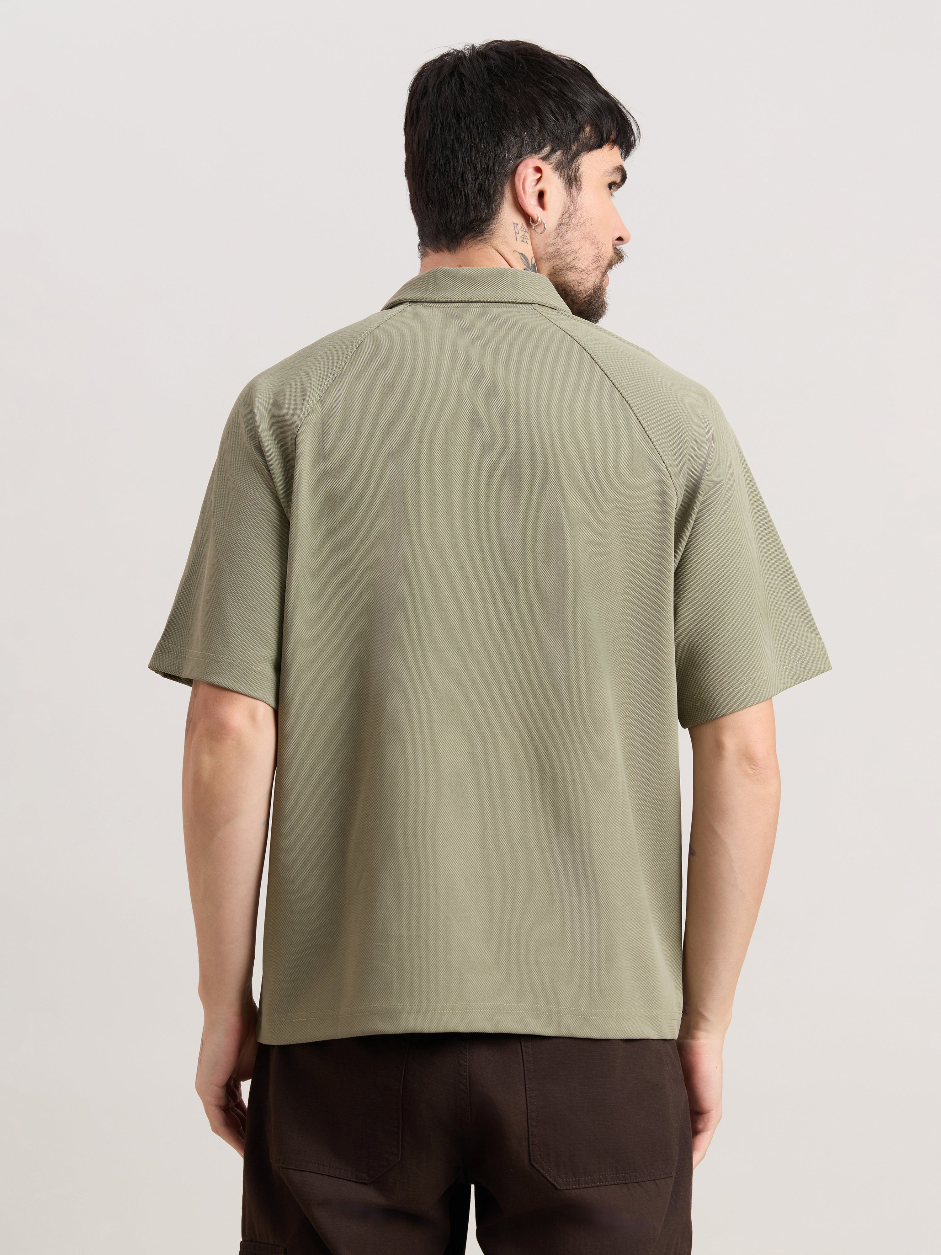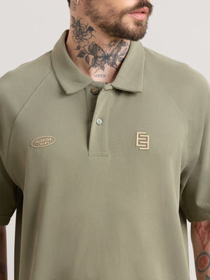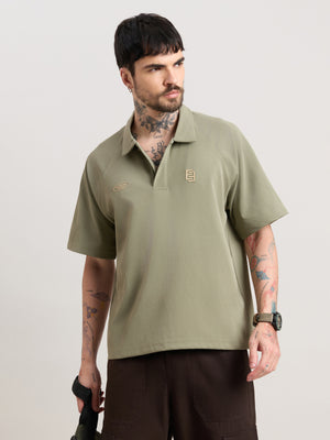 Xomis - Relaxed Fit Printed Polo T-Shirt - Olive
