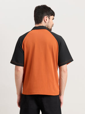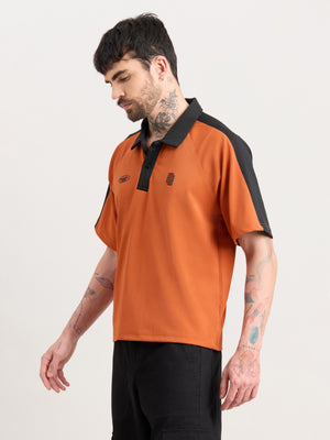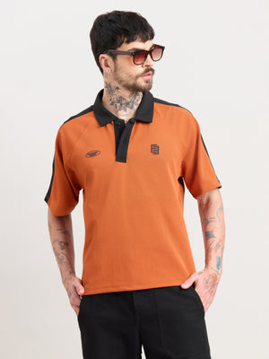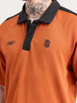 Xomis - Relaxed Fit Printed Polo T-Shirt - Orange