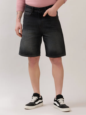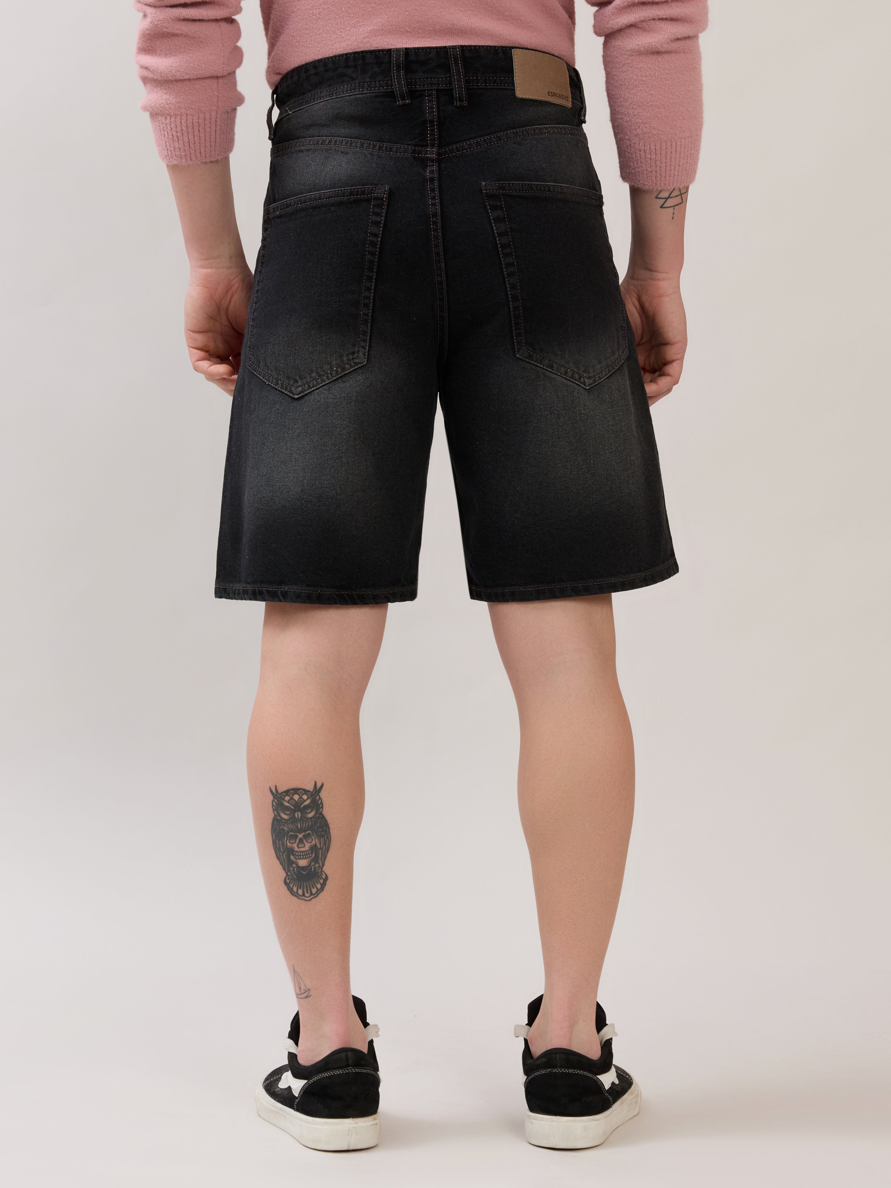 Wax - Relaxed Fit Denim Shorts - Black Shade