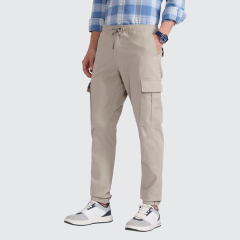 Banano - Striped Drawstring Loose Fit Pant - Beige
