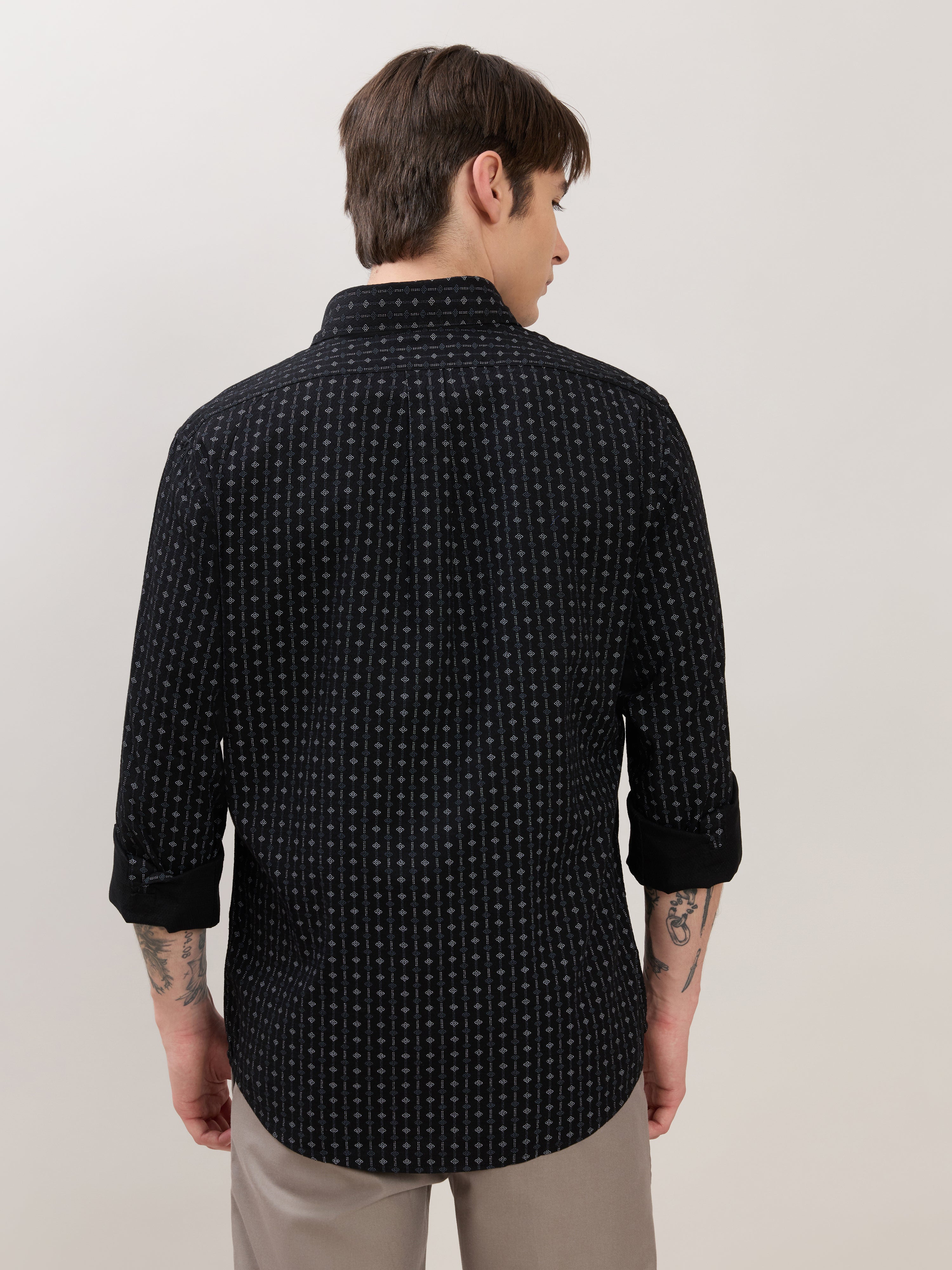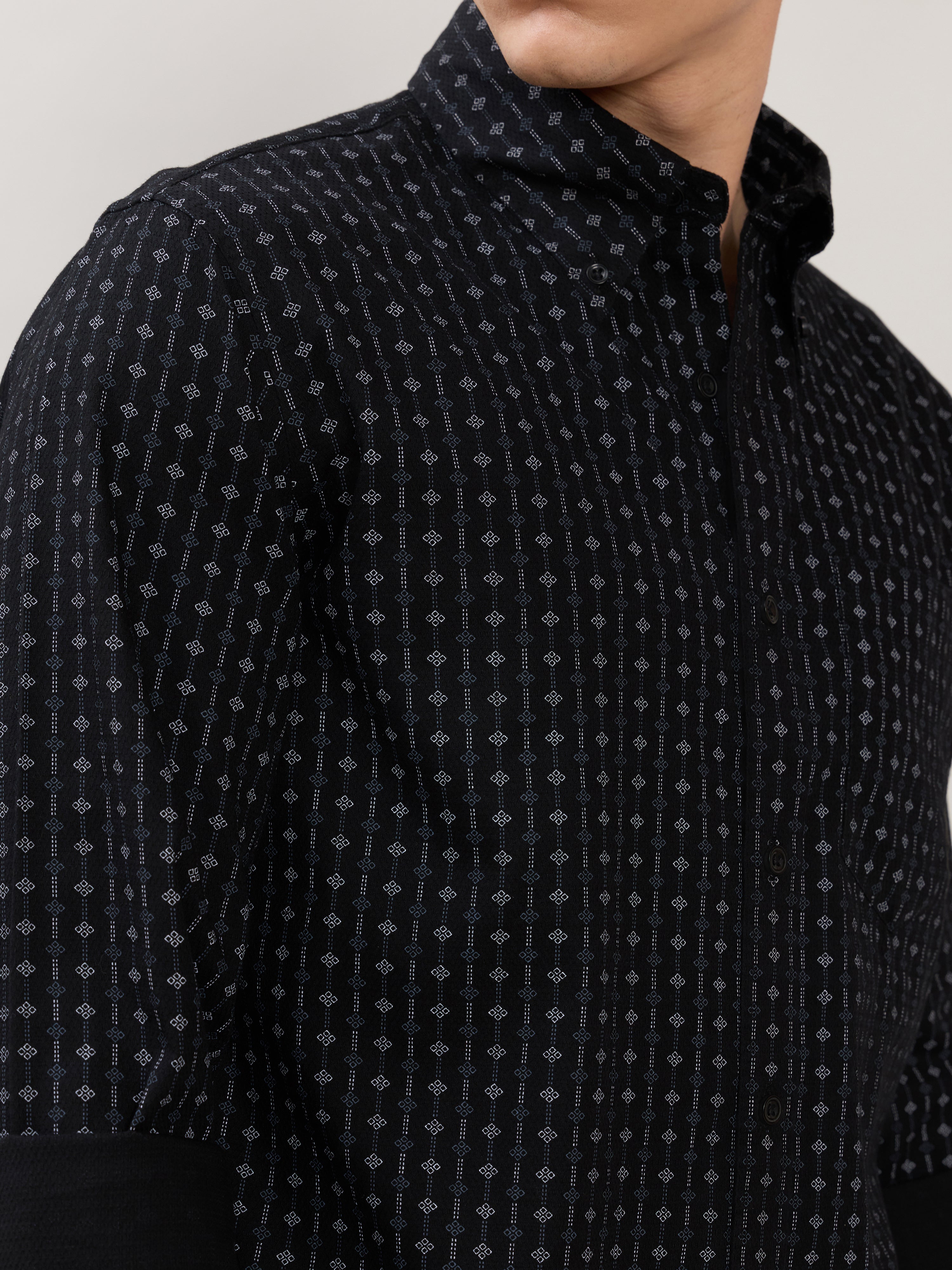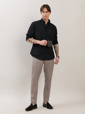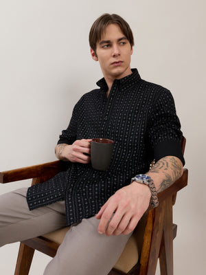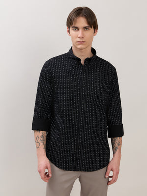 Nerelo - Smart Fit Printed Cotton Shirt - Black