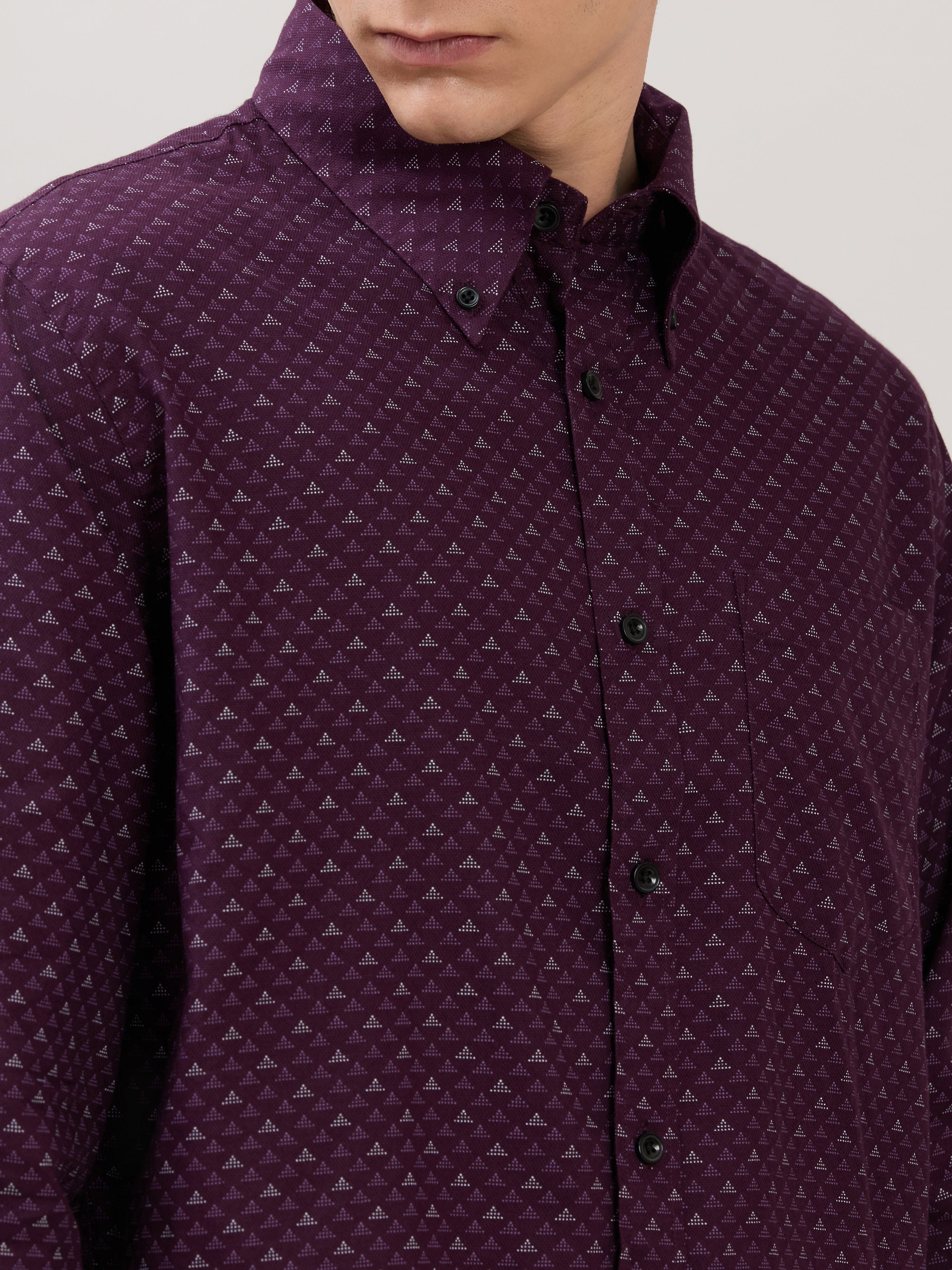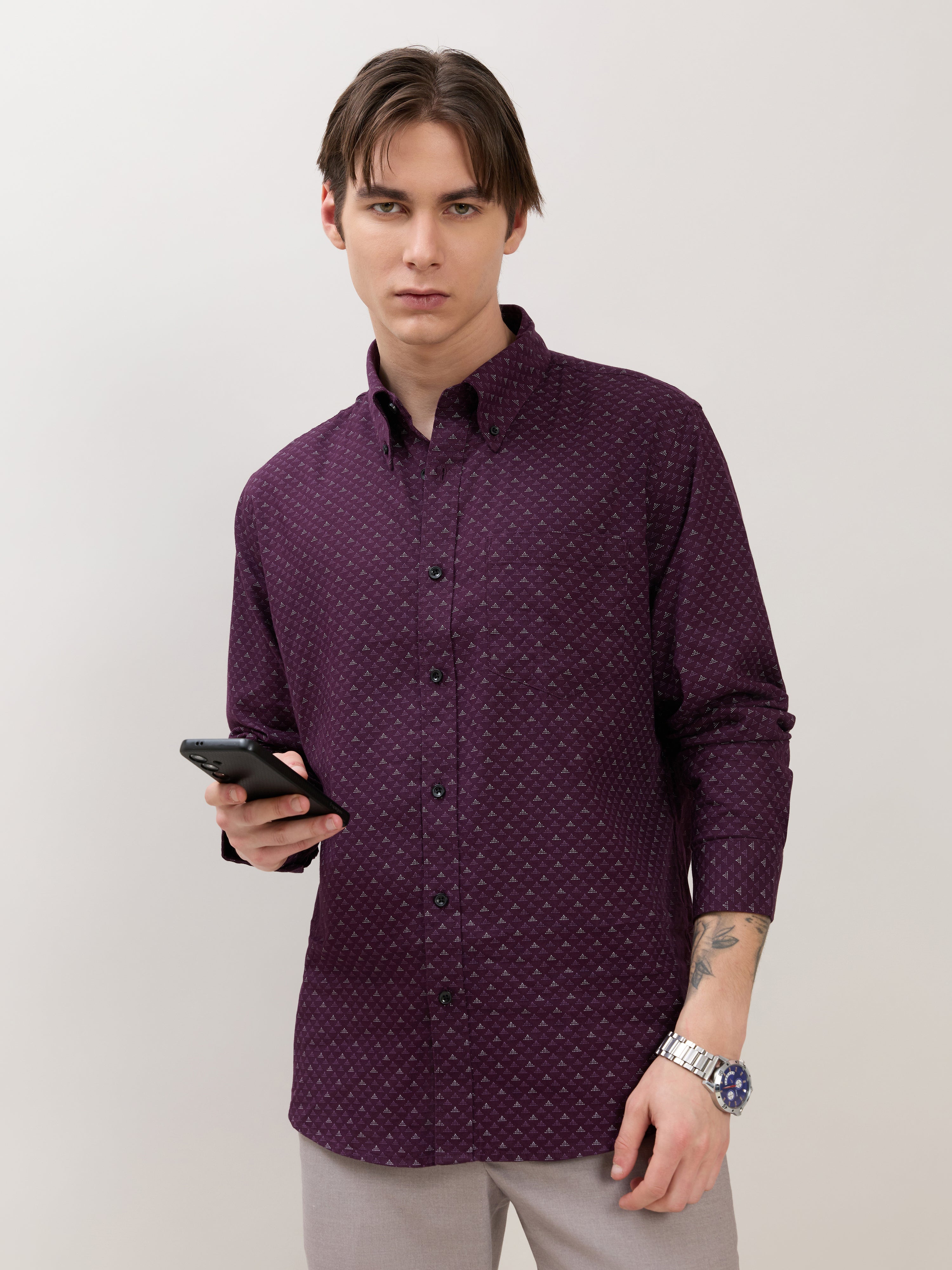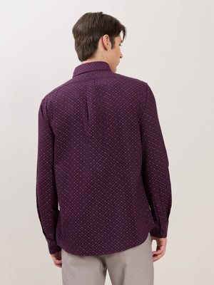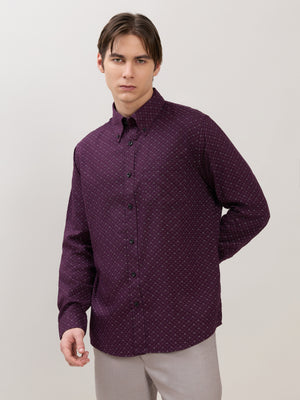 Nerelo - Smart Fit Printed Cotton Shirt - Dark Purple