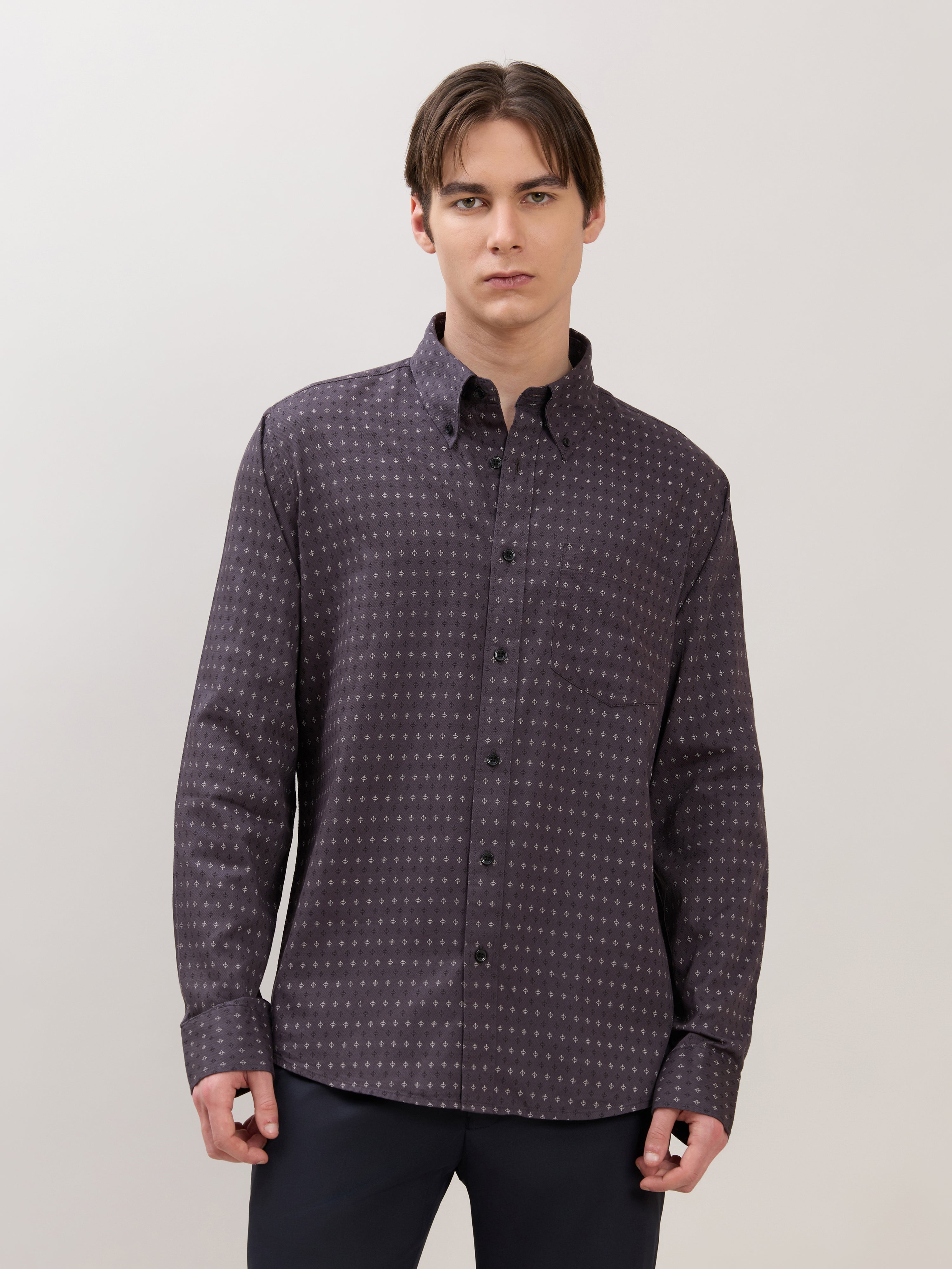 Nerelo - Smart Fit Printed Cotton Shirt - Grape