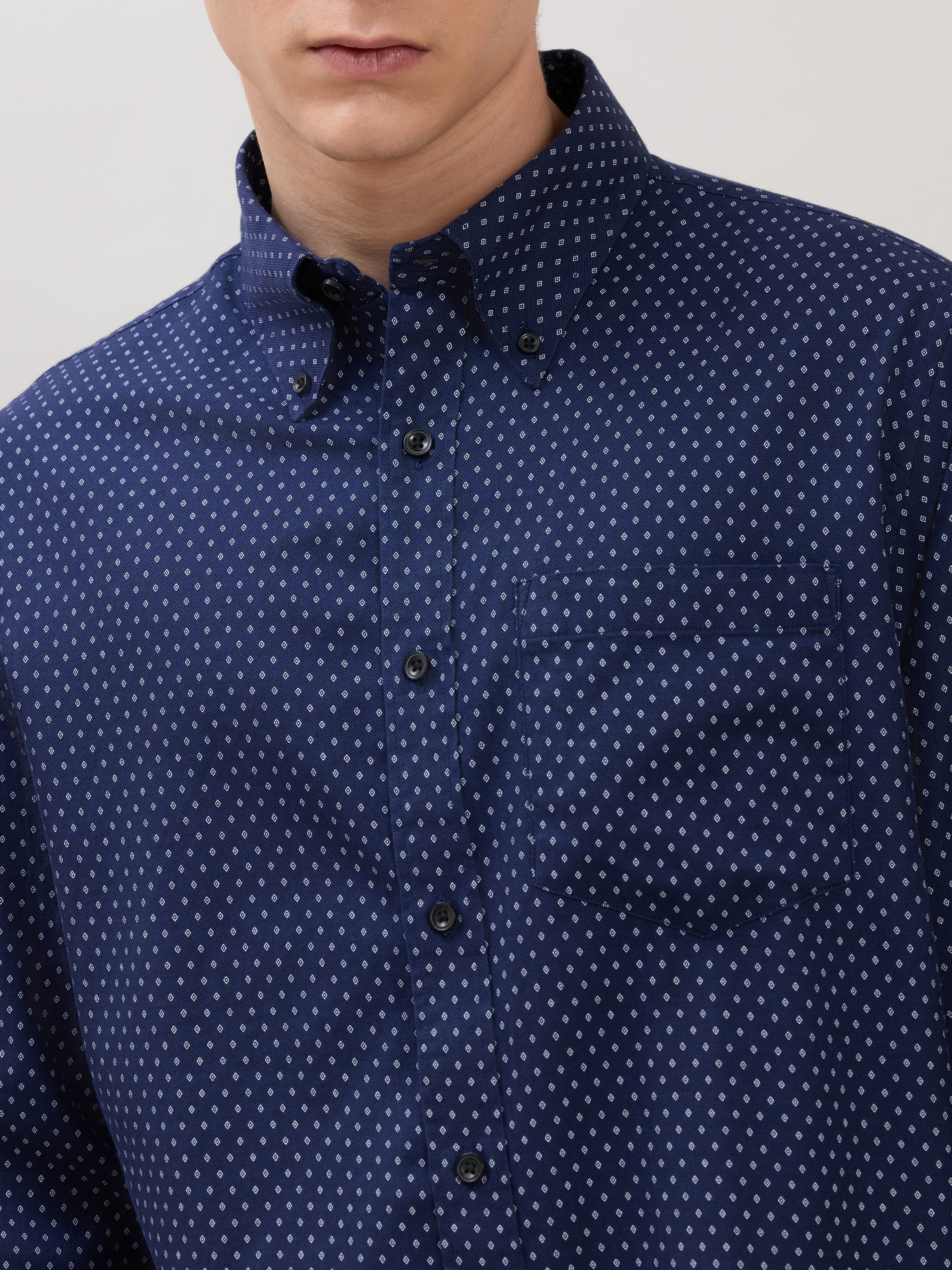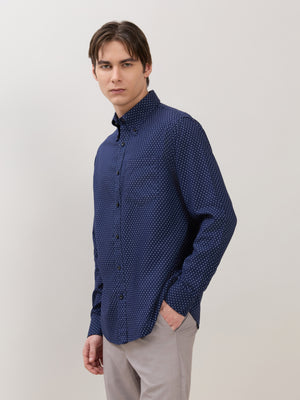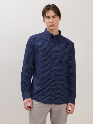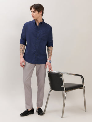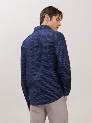 Nerelo - Smart Fit Printed Cotton Shirt - Navy Blue