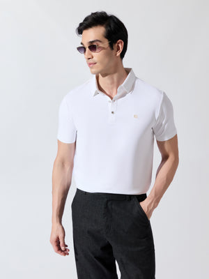Solaris Bloom - White Regular Fit Polo T-Shirt