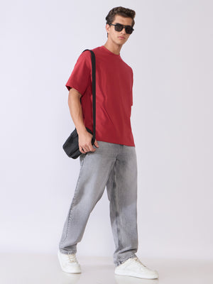 Vynora - Loose Fit Round Neck T-Shirt - Red
