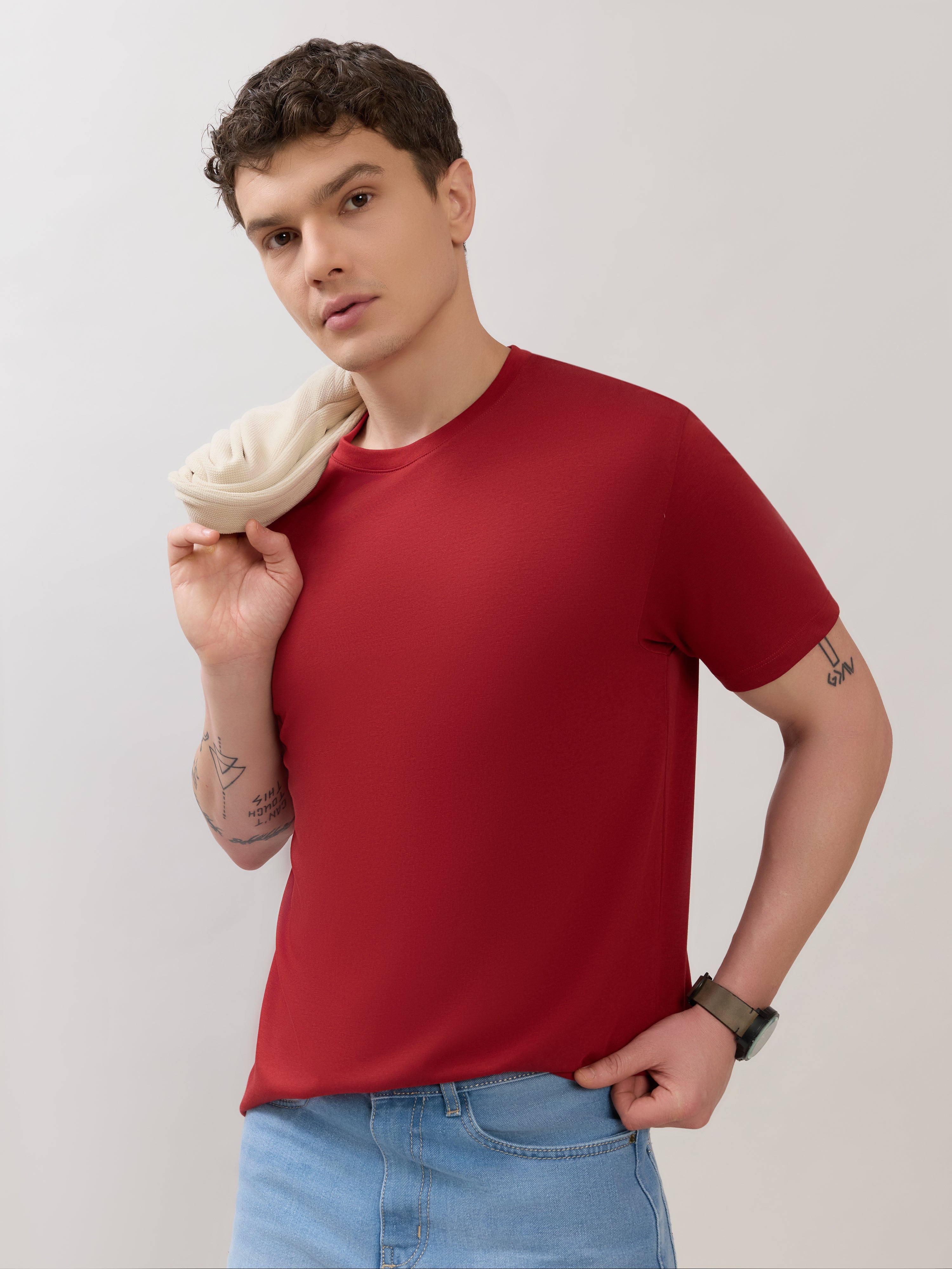 Indulge in refined minimalism with the Zanaia Slim Fit T-Shirt. Expertly crafted from a premium cotton-polyester blend, this tee offers a smooth, breathable feel with lasting structure and elegance. The precision slim fit contours the body for a clean, modern silhouette, adds a subtle yet striking statement. Designed for the modern wardrobe, this elevated essential transitions seamlessly from day to evening, delivering understated luxury with every wear.