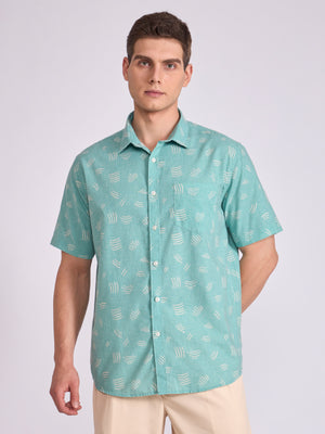 Lucius - Printed Half Sleeve Shirt - Light Teal Green