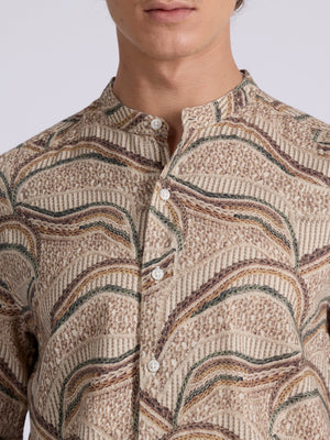 Moritz - Band Collar Printed Shirt - Forest Green