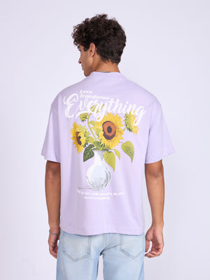 Trace - Full Of Love Printed Loose Fit T-Shirt - Lavender