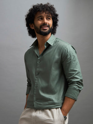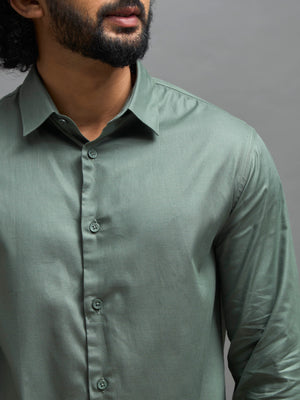 Calanthe - Giza Cotton Slim Fit Shirt - Moss Green