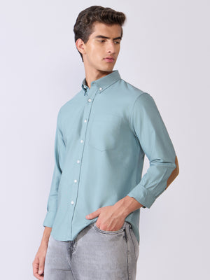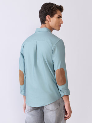 Orbit - Relaxed Fit Oxford Shirt With Elbow Patch - Blue Topaz