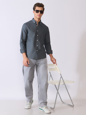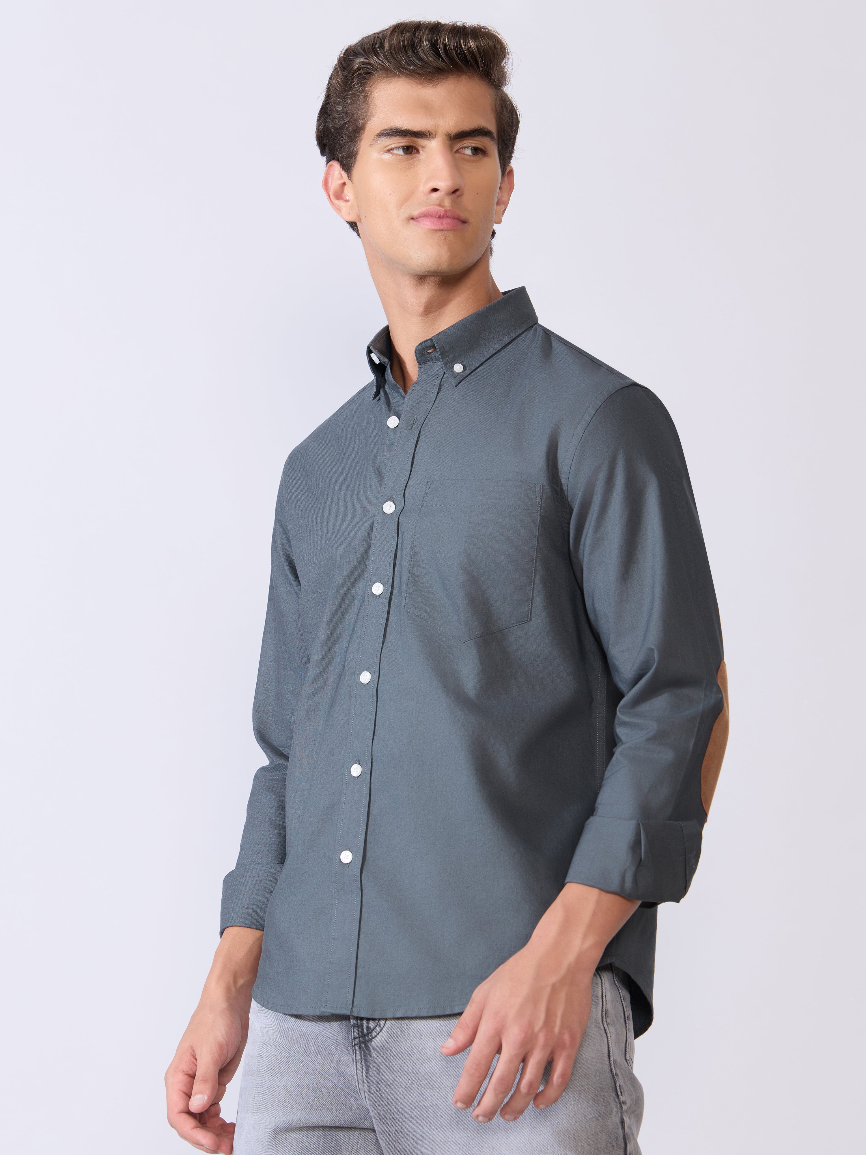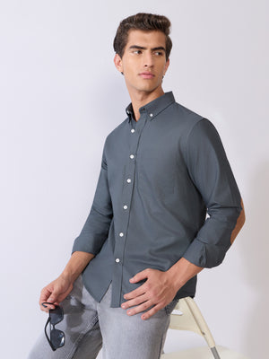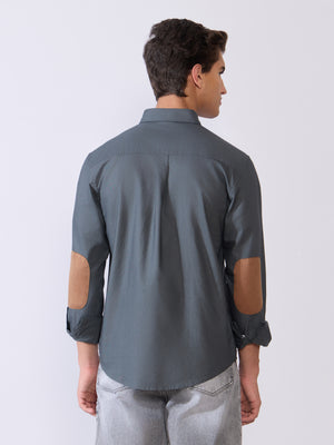 Orbit - Relaxed Fit Oxford Shirt With Elbow Patch - Cement Grey