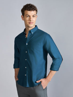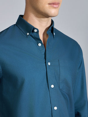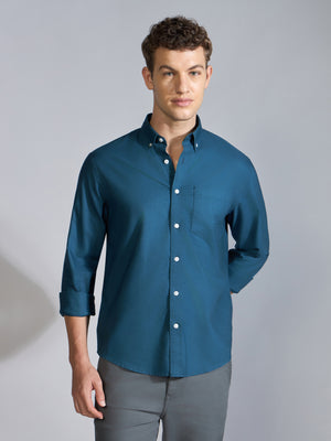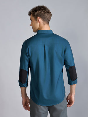 Orbit - Relaxed Fit Oxford Shirt With Elbow Patch - Peacock Blue