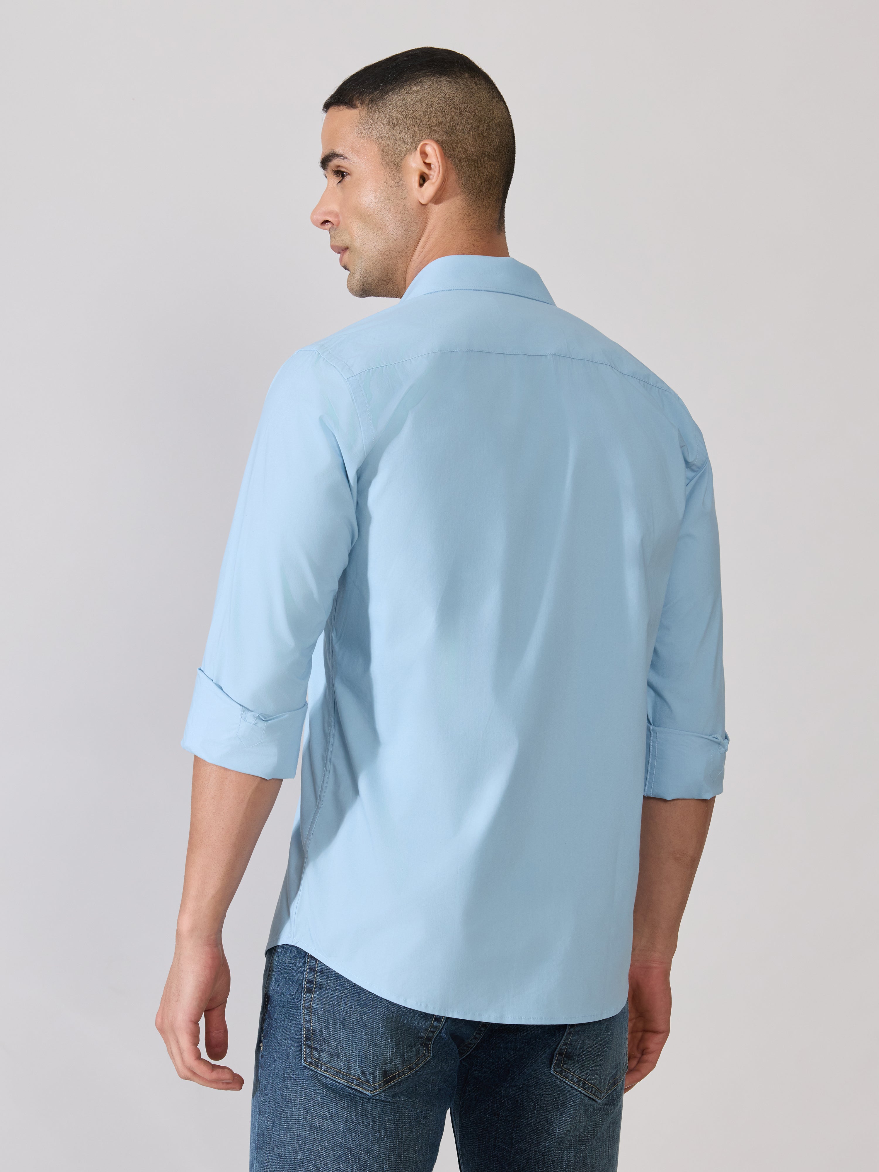 Valerius - Trim Fit Poplin Shirt - Light Blue