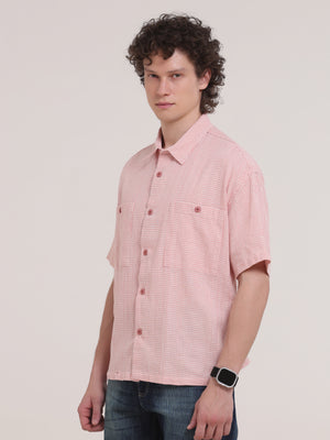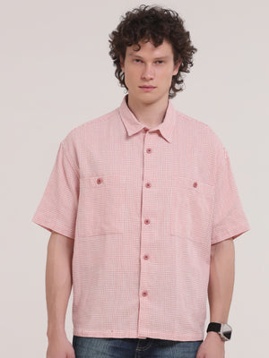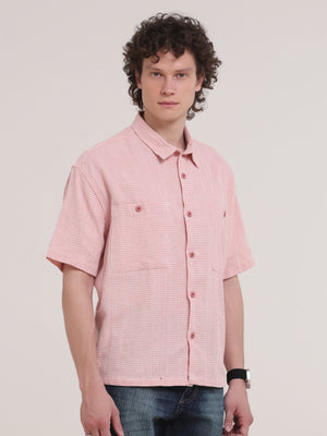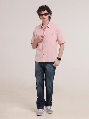 Michek Oversized Double Pocket Half Sleeve Shirt - Pink
