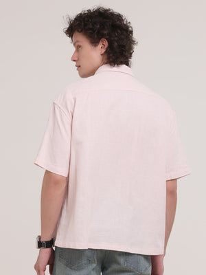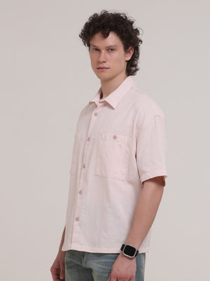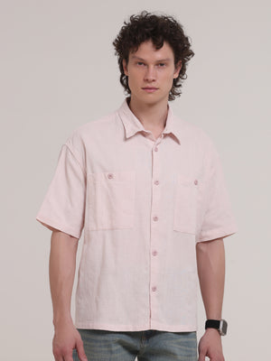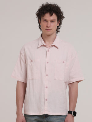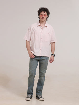 Michek Oversized Double Pocket Half Sleeve Shirt- Light Pink