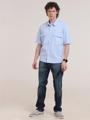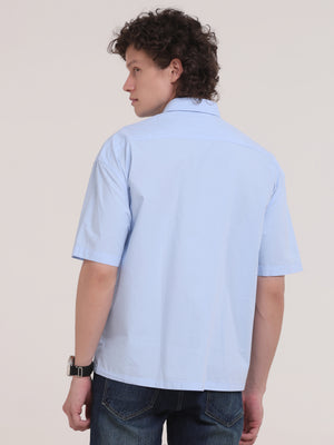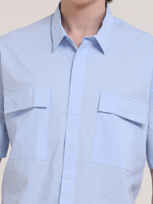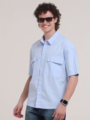 Velvo Oversized Double Pocket Half Sleeve Sleeve Shirt- Light Blue