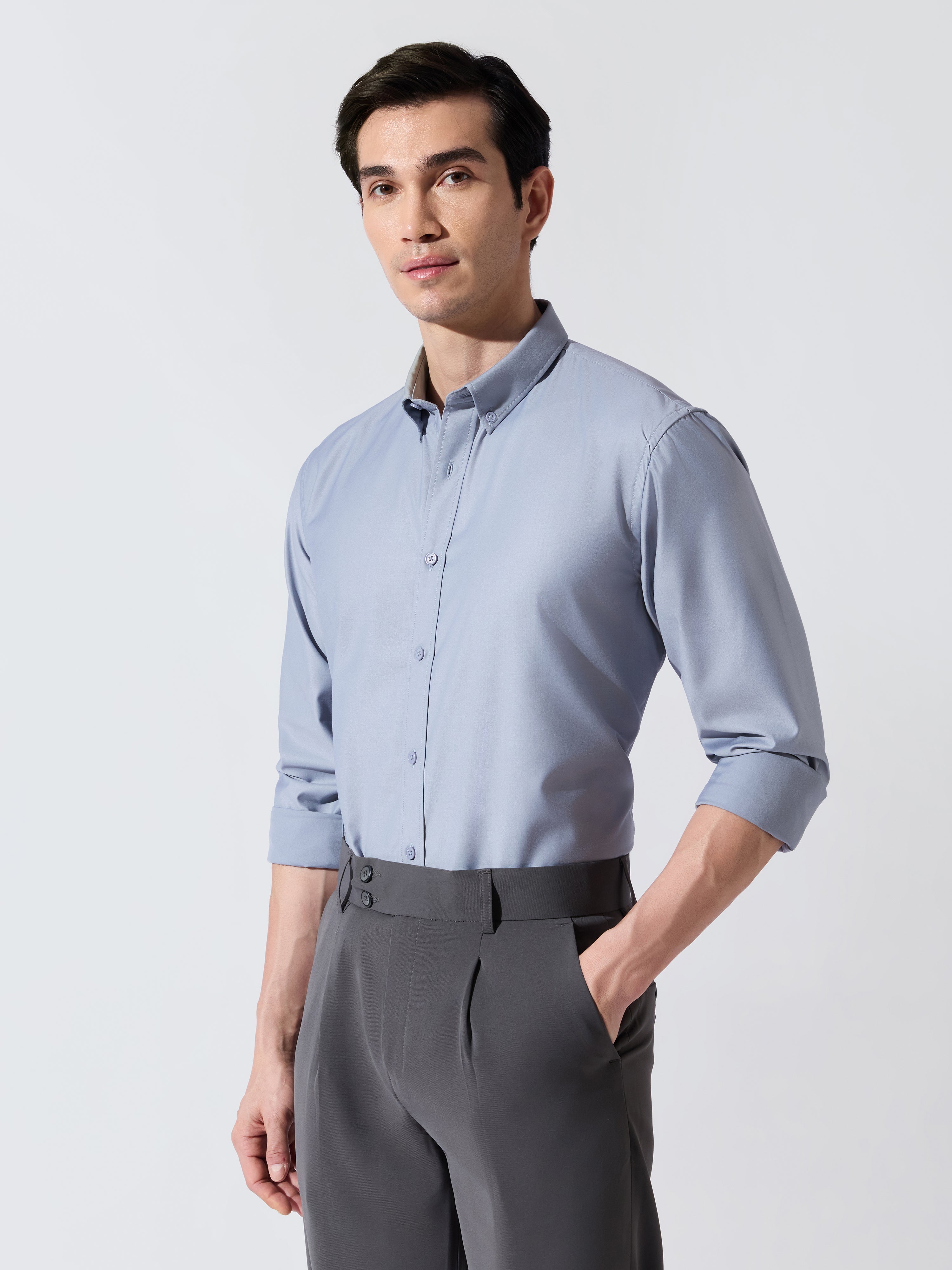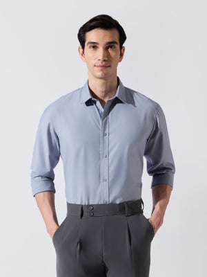 Vosha - Relaxed Fit Plain Shirt - Airforce Blue