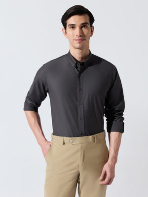 Vosha - Relaxed Fit Plain Shirt - Dark Grey