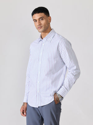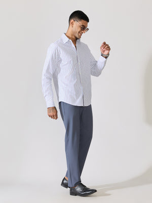 The Erzela Smart Fit Striped Shirt in Indigo blends sharp tailoring with modern minimal style. Crafted from pure cotton, it offers a crisp structure, breathable comfort, and a polished appearance that works effortlessly for smart-casual looks. The subtle vertical stripes enhance your frame, giving you a clean and elevated silhouette suitable for workdays, meetings, and refined evening outings