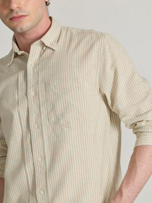 The Graham Striped Shirt in Green combines effortless style with breathable comfort. Made from a soft cotton blend with linen and viscose, it offers a relaxed fit that’s perfect for casual outings or smart layering. Its subtle stripes add a refined touch to your everyday wardrobe.