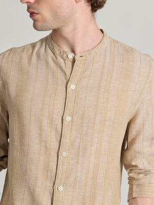 Salvator - Band Collar Striped Shirt - Light Beige