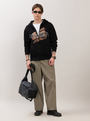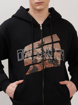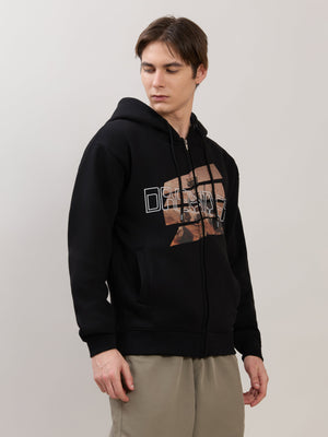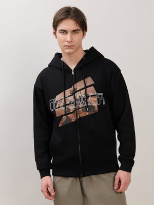 Apex - Relaxed Fit Printed Zipper Hoodies - Black