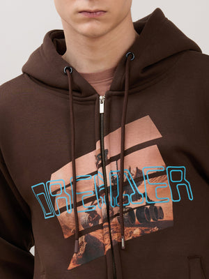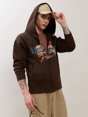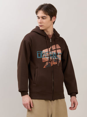 Apex - Relaxed Fit Printed Zipper Hoodies - Dark Brown