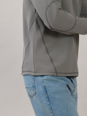 Kinoia - Onstep Printed Contrast-Stitch Relaxed Sweatshirt - Grey