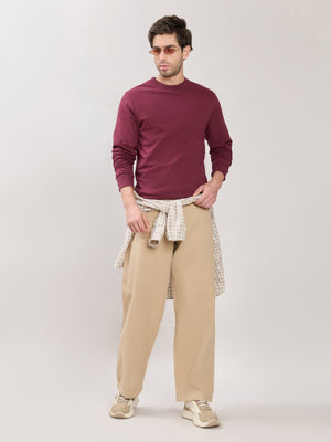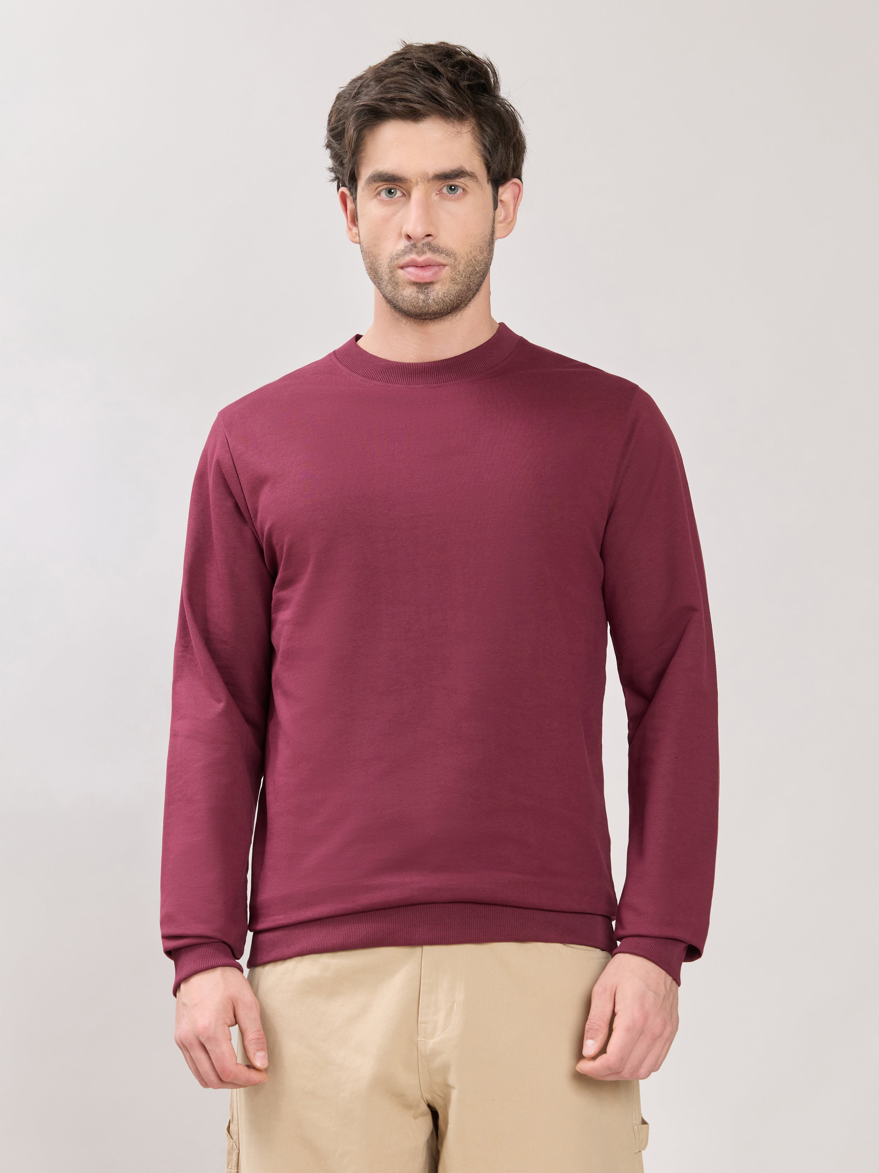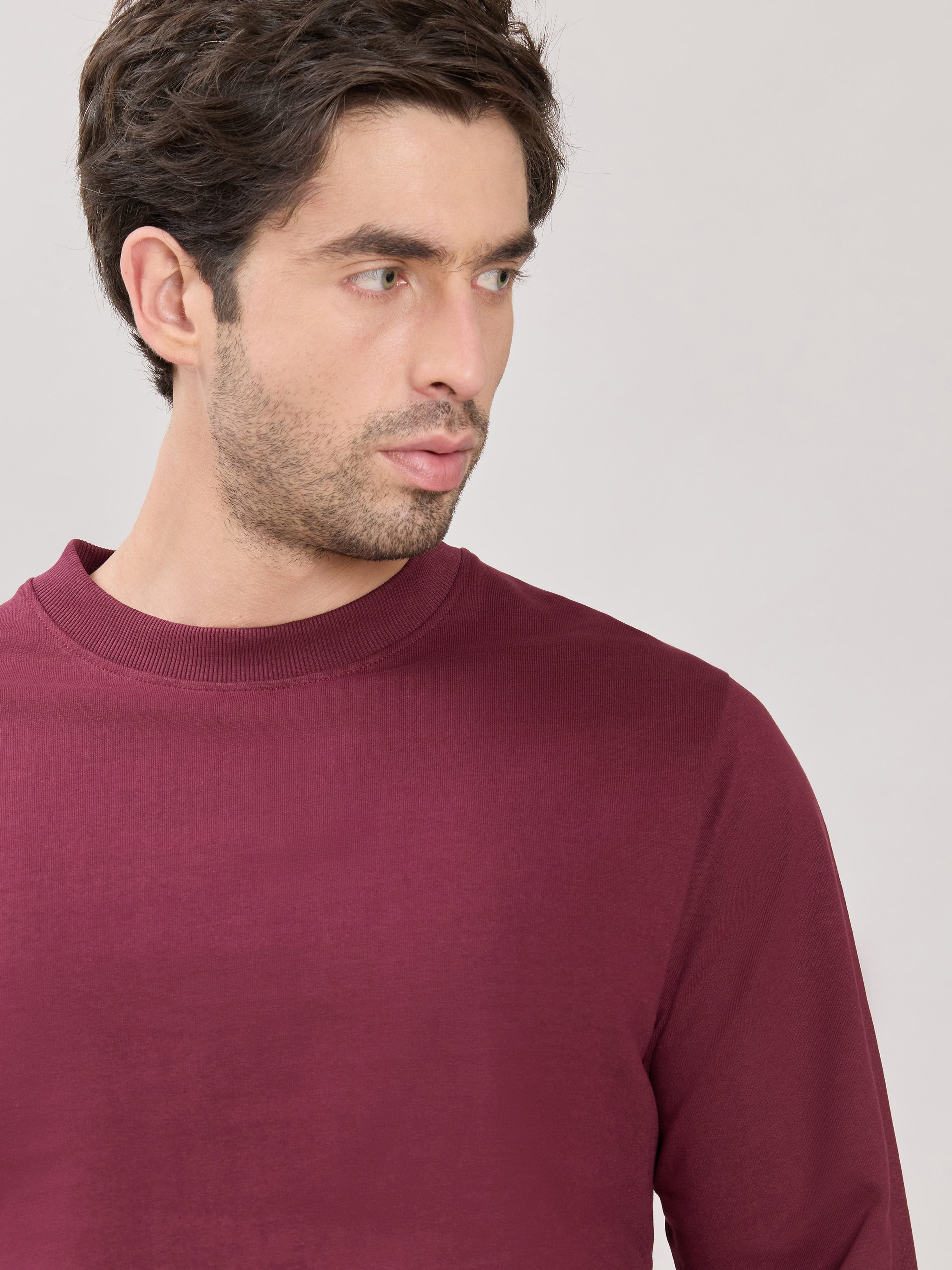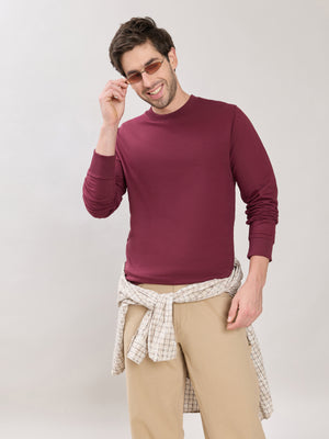 Stanwick - Slim Fit Maroon Crew Neck Sweater
