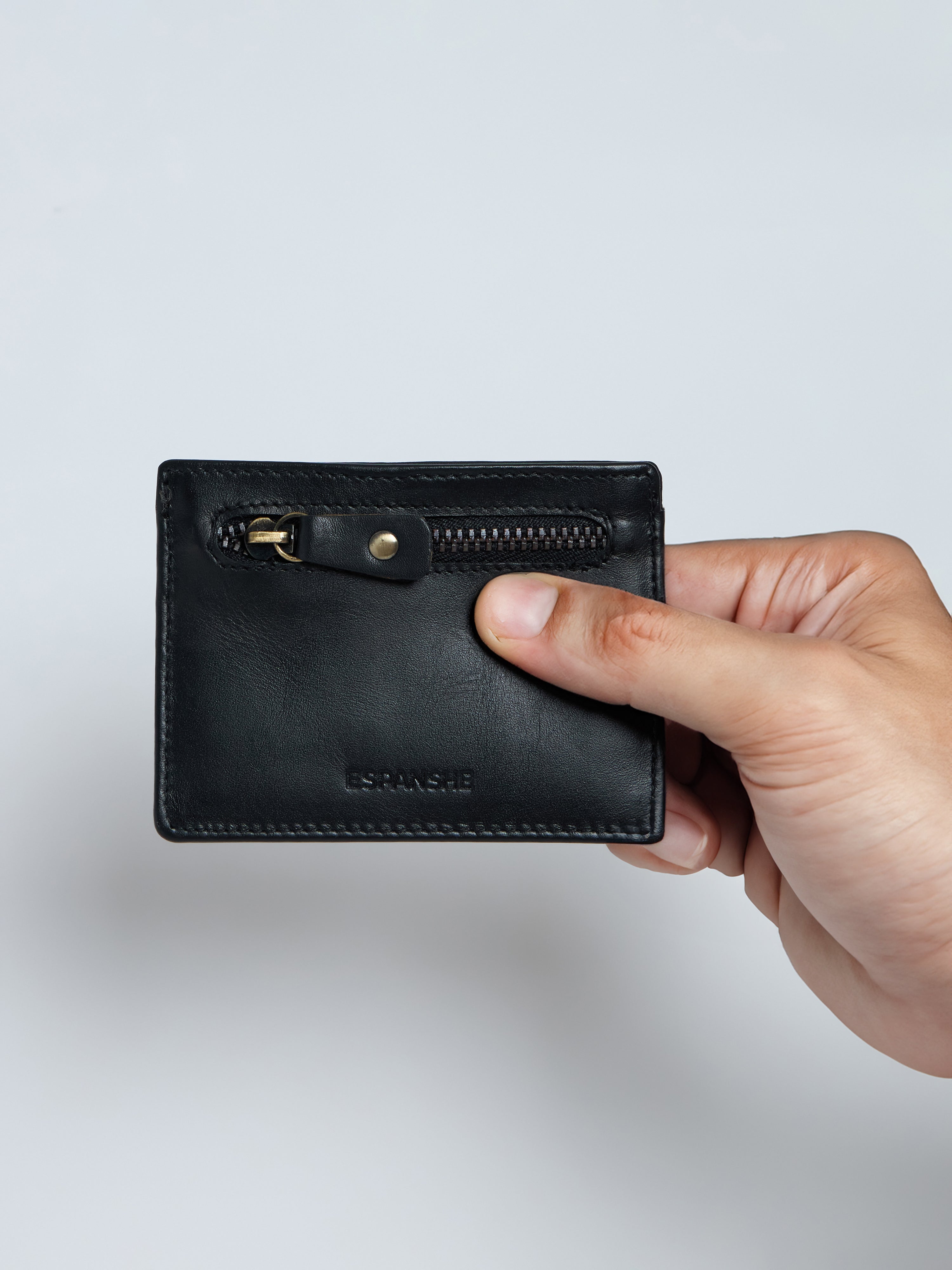 Arctic-9 - Card Holder Leather Zip Wallet - Black