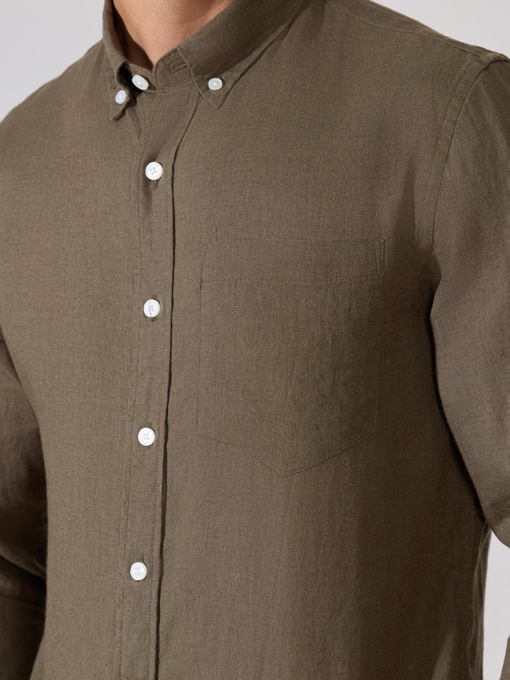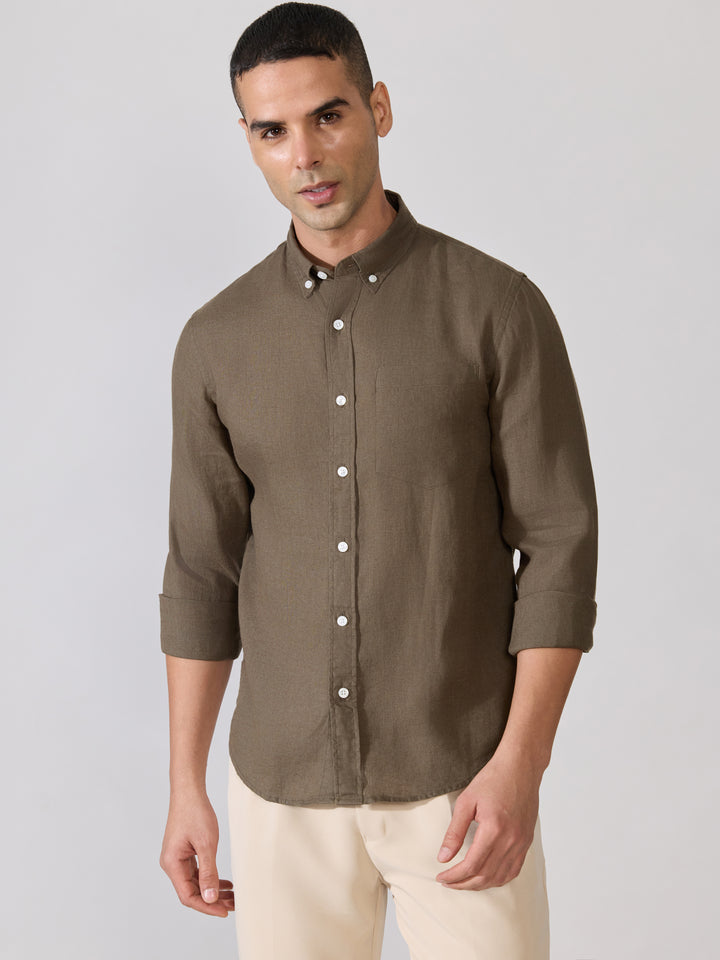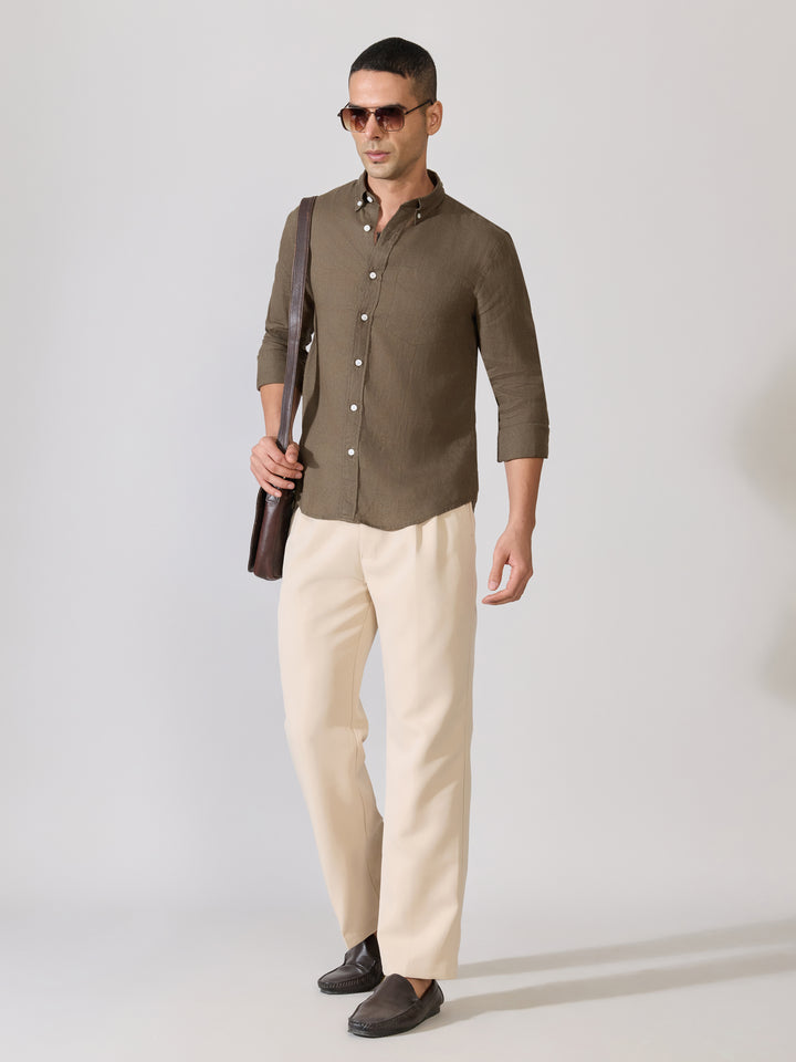 Experience easygoing comfort with the Erta Relaxed Linen Shirt, crafted from breathable, lightweight linen that keeps you cool in any weather. Its soft texture with solid color, clean button-down collar, and relaxed fit give it a fresh, effortless look—perfect for formal wear and smart casual outings.