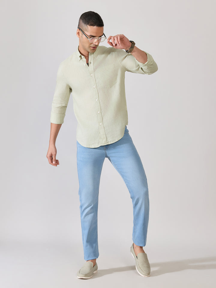 Experience easygoing comfort with the Erta Relaxed Linen Shirt, crafted from breathable, lightweight linen that keeps you cool in any weather. Its soft texture with solid color, clean button-down collar, and relaxed fit give it a fresh, effortless look—perfect for formal wear and smart casual outings.