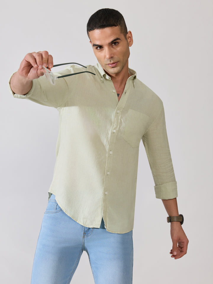 Erta - Relaxed Linen Shirt - Seacrest Green