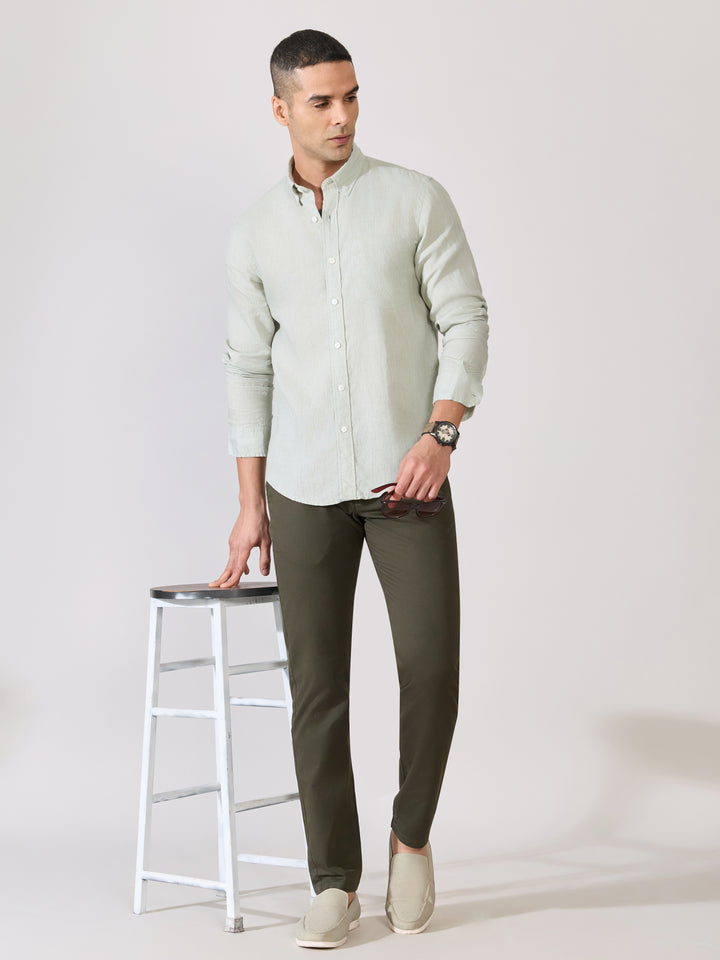 Experience easygoing comfort with the Erta Relaxed Linen Shirt, crafted from breathable, lightweight linen that keeps you cool in any weather. Its soft texture with solid color, clean button-down collar, and relaxed fit give it a fresh, effortless look—perfect for formal wear and smart casual outings.
