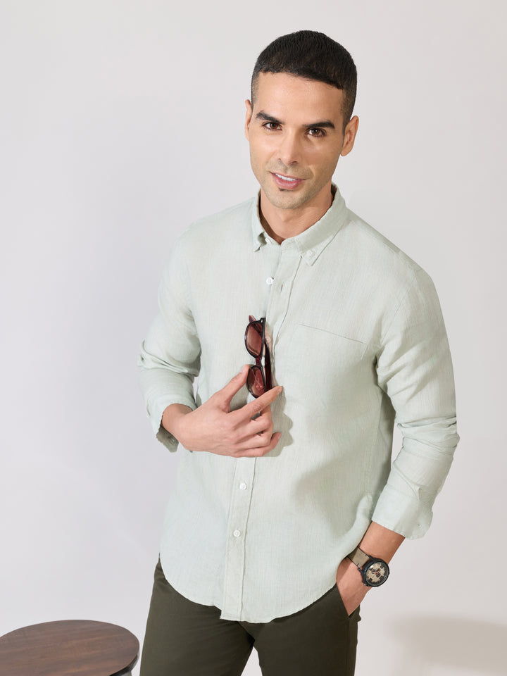 Erta - Relaxed Linen Shirt - Seafoam Green
