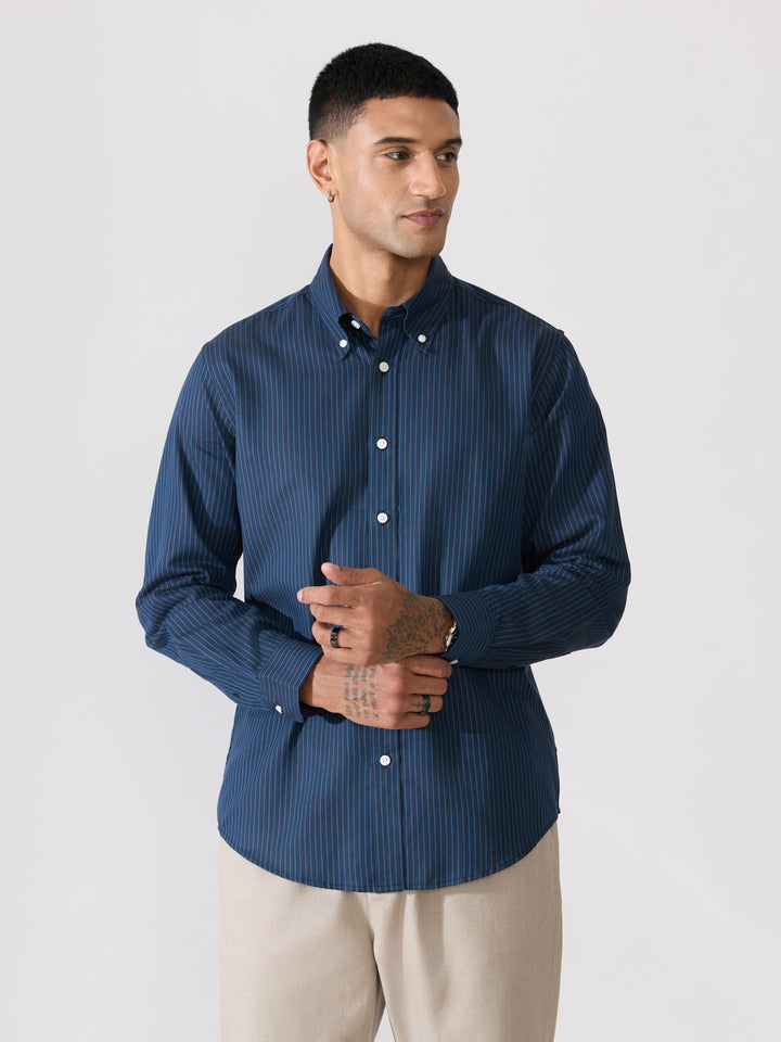 Erzela - Smart Fit Striped Shirt - Navy Blue
