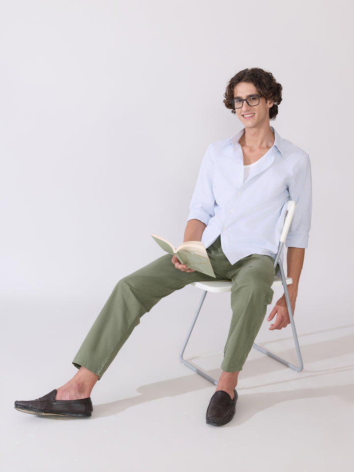 The Erzela Smart Fit Striped Shirt in Olive blends sharp tailoring with modern minimal style. Crafted from pure cotton, it offers a crisp structure, breathable comfort, and a polished appearance that works effortlessly for smart-casual looks. The subtle vertical stripes enhance your frame, giving you a clean and elevated silhouette suitable for workdays, meetings, and refined evening outings